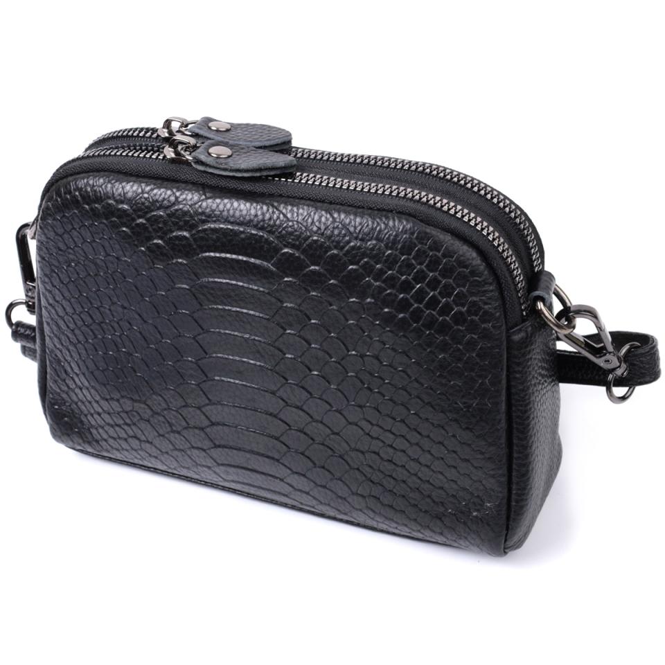 Описание: Компактная сумка для женщин на два отделения из натуральной кожи Vintage 22799 Черный