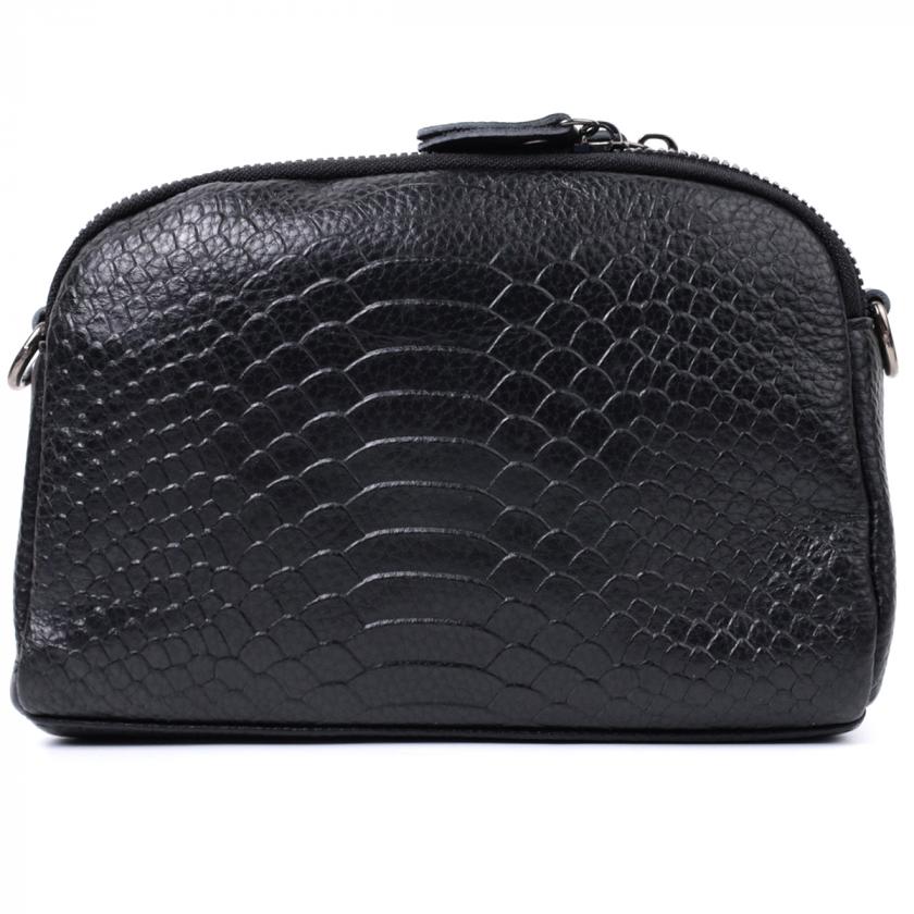 Женская сумка из натуральной мягкой кожи высокого качества с тиснением под змею. Изделие очень удобное, можно носить на плече и через плечо, на кисти и просто под рукой как клатч. Модель дополнена фурнитурой цвета темного серебра. Аксессуар имеет два основных отделения в которых два кармашки - один на молнии и один открытого типа, а также карман на молнии снаружи, на тыльной стороне. Идеальный вариант для любой девушки которая ценит качество и имеет превосходный вкус.