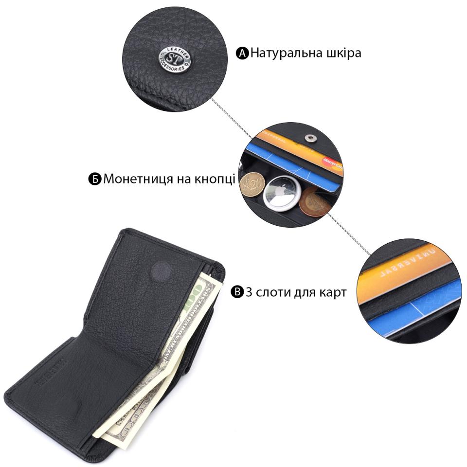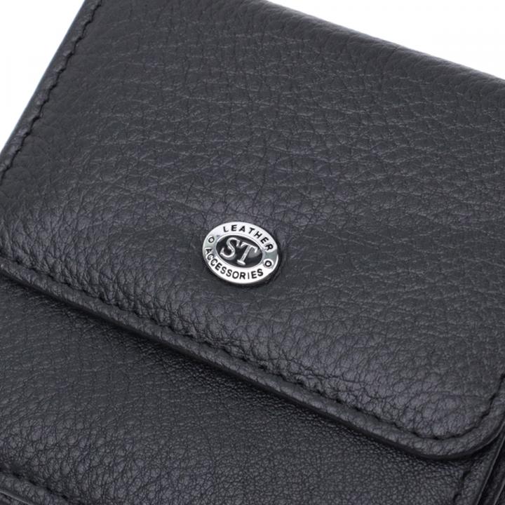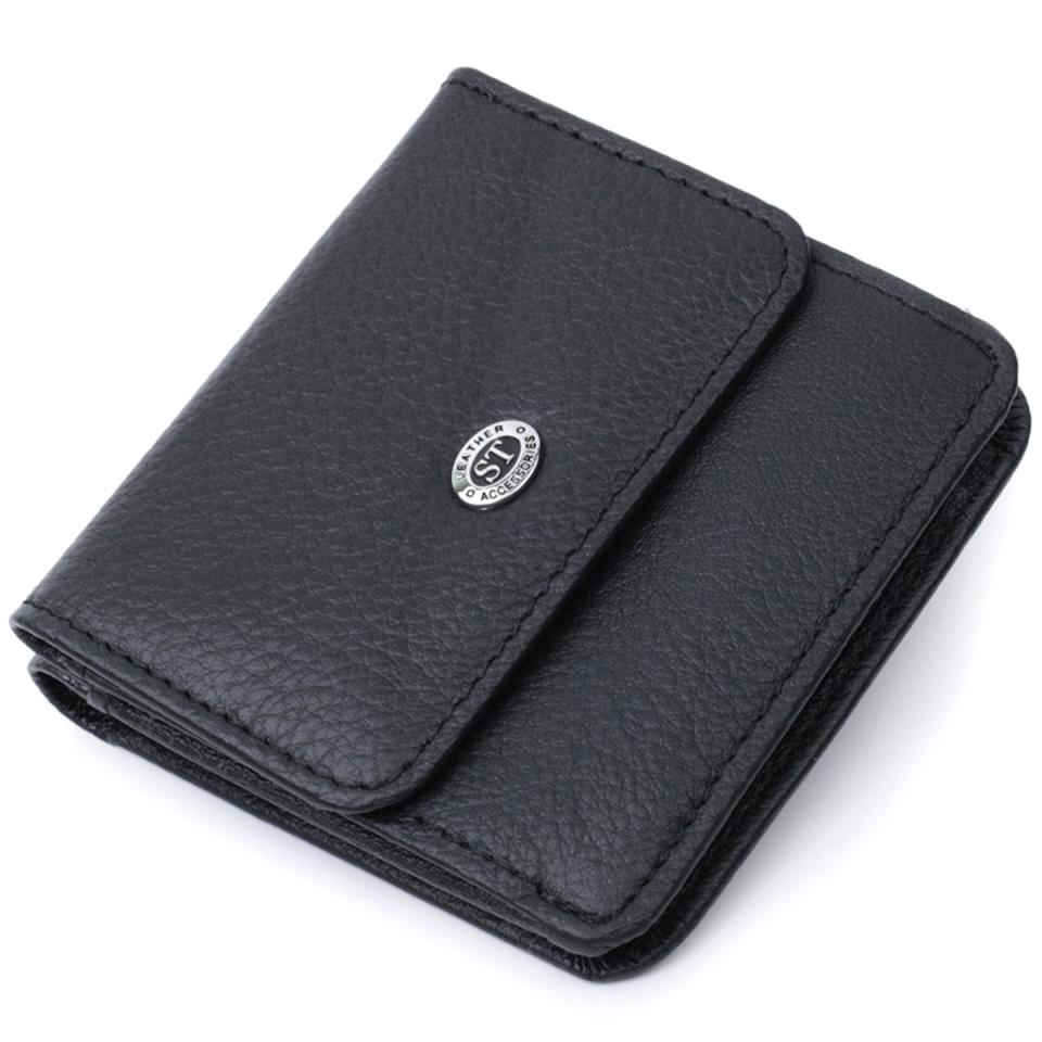Компактный женский кошелек с карманом для монет из натуральной кожи ST Leather 22690 Черный