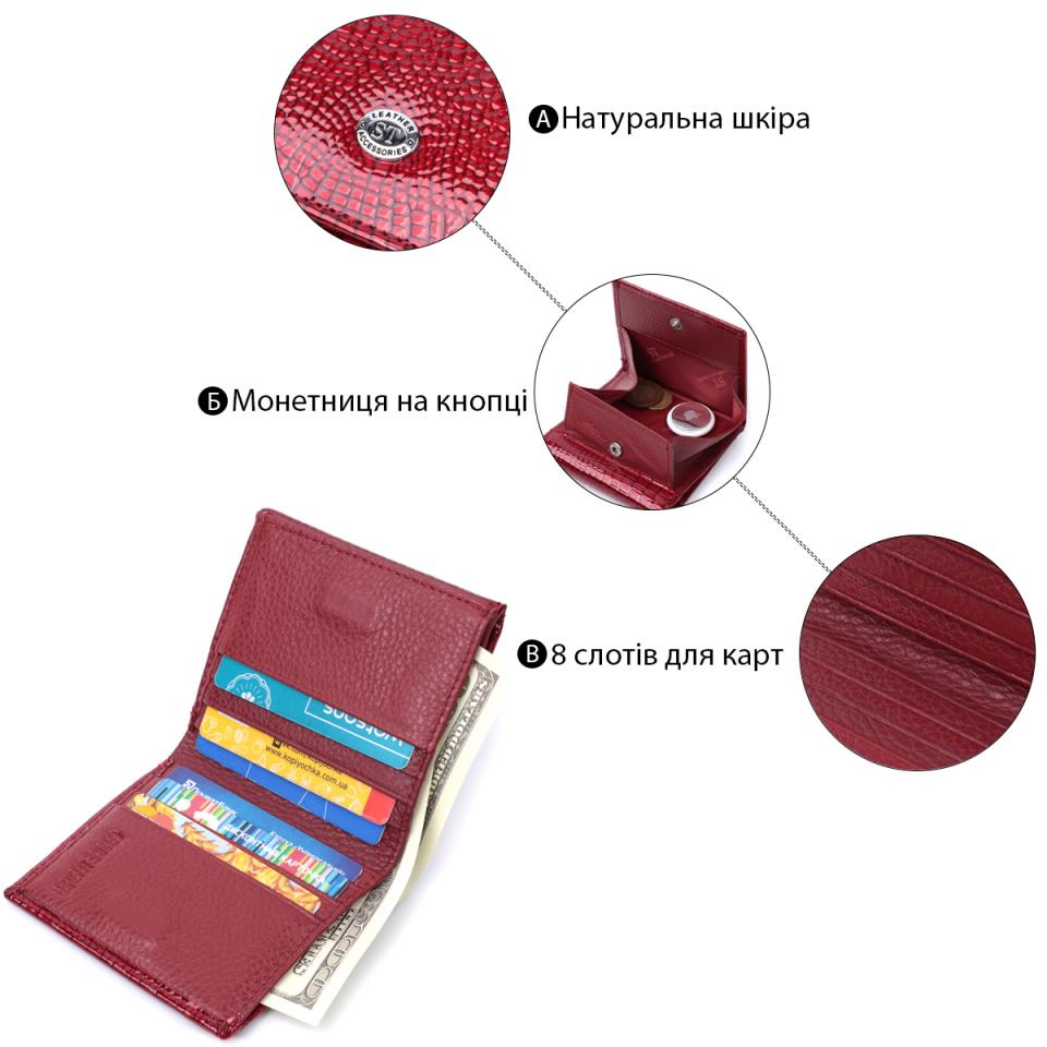 Характеристики: Компактный кошелек для женщин из натуральной лакированной кожи ST Leather 22687 Красный