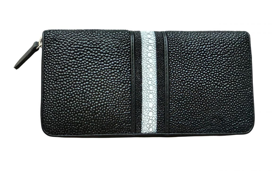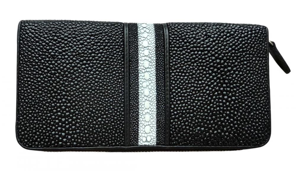 Кошелек портмоне на молнии из натуральной кожи ската черный с белой полоской Ekzotic leather stw30_7