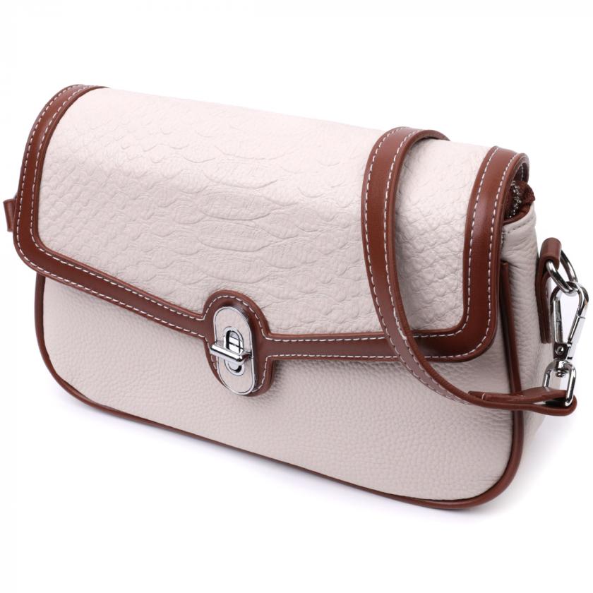 Отзывы: Красивая женская сумка на лето с фактурным клапаном из натуральной кожи Vintage 22623 Белая