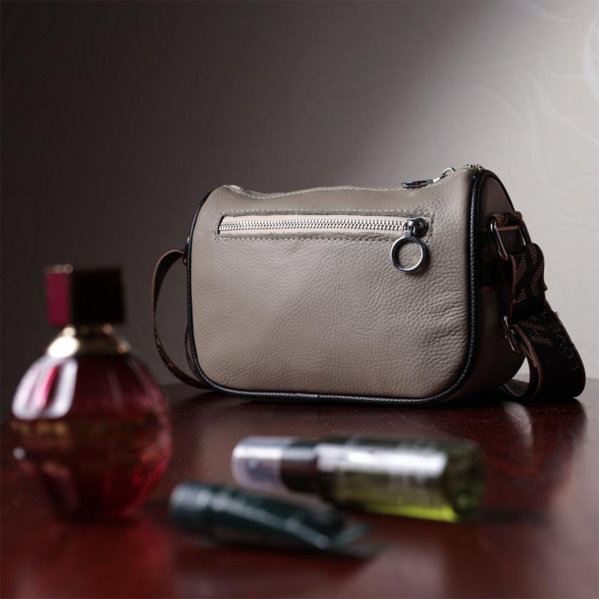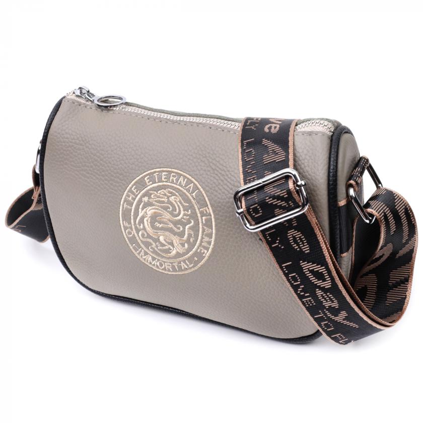 Отзывы: Красивая женская сумка с вышивкой на лицевой стороне из натуральной кожи Vintage 22626 Серая