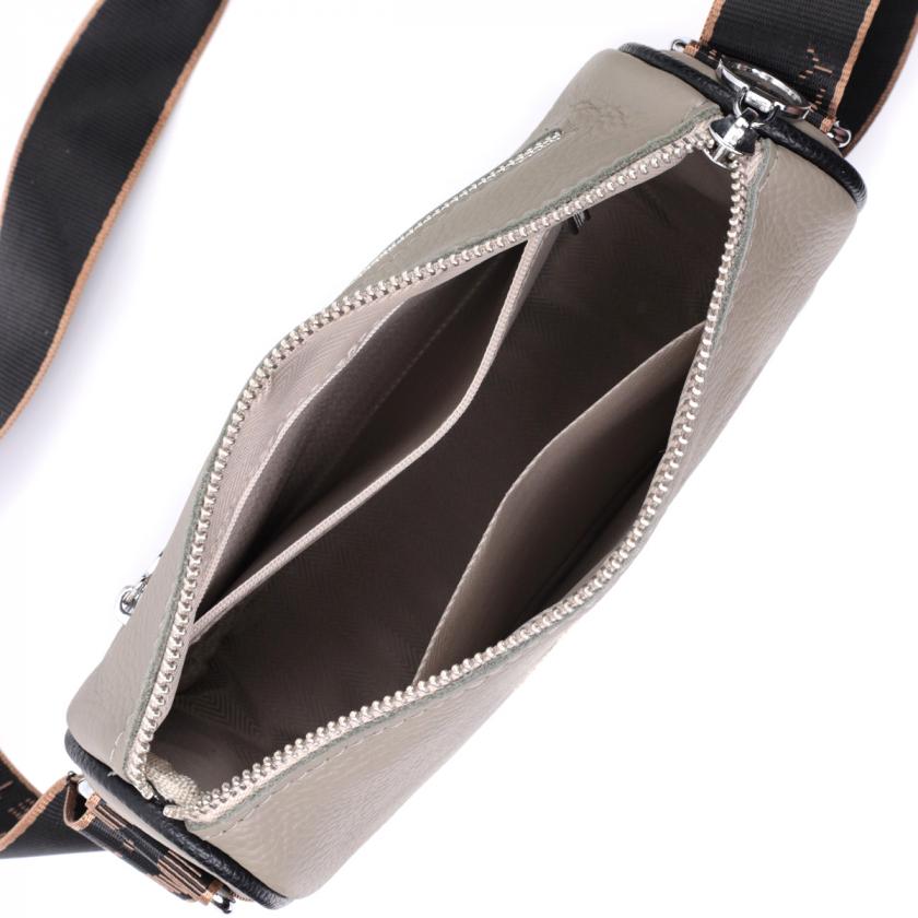 Характеристики: Красивая женская сумка с вышивкой на лицевой стороне из натуральной кожи Vintage 22626 Серая