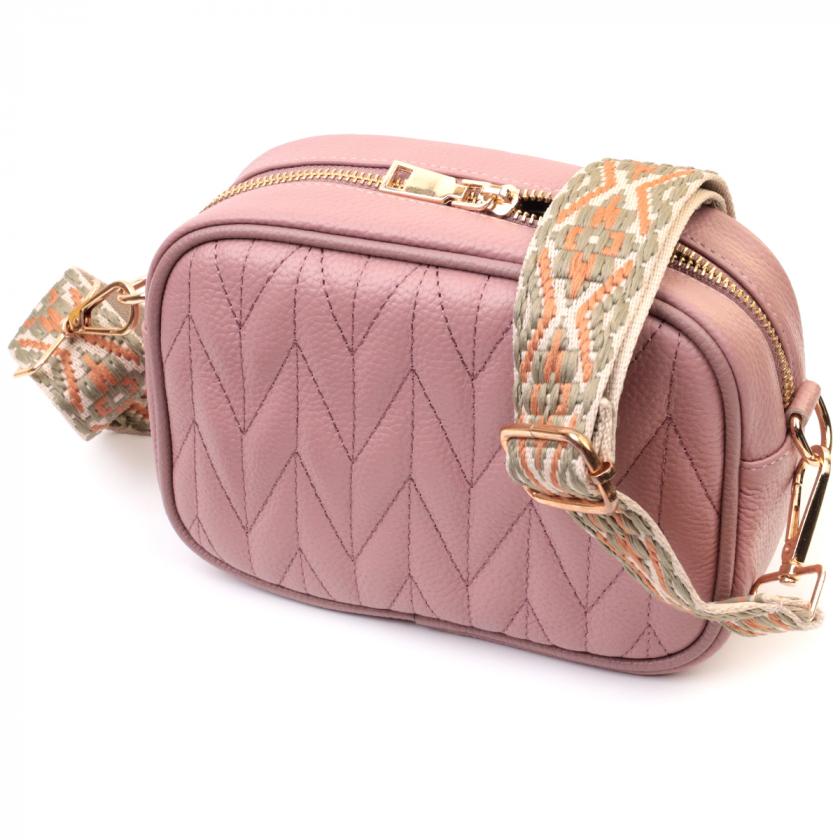 Отзывы: Красивая стеганая женская сумка из натуральной кожи Vintage 22614 Розовая