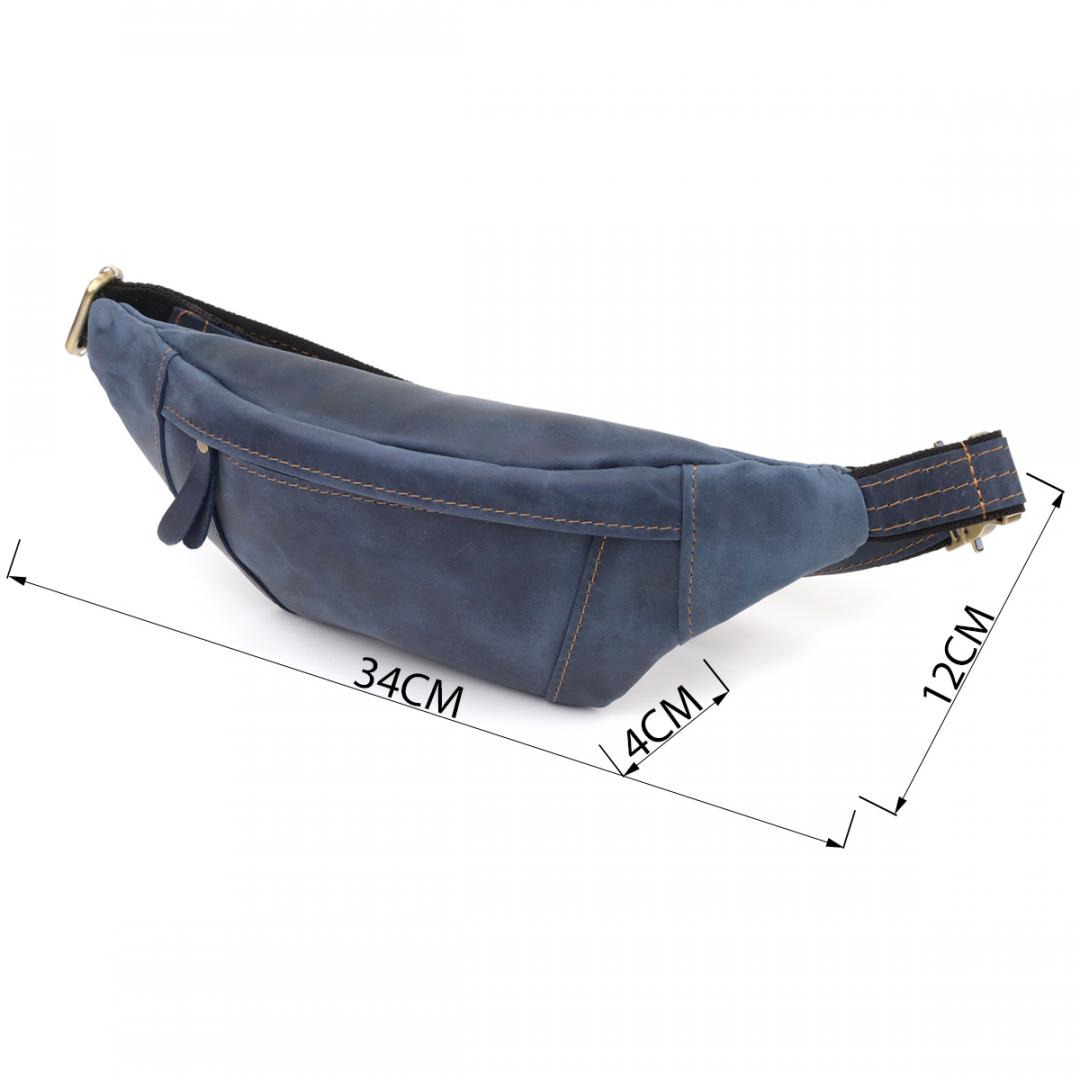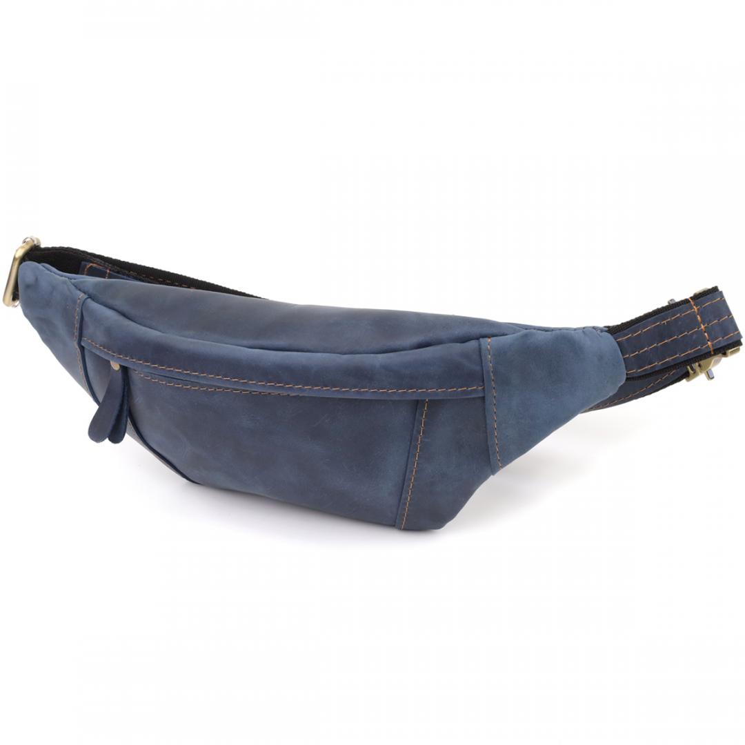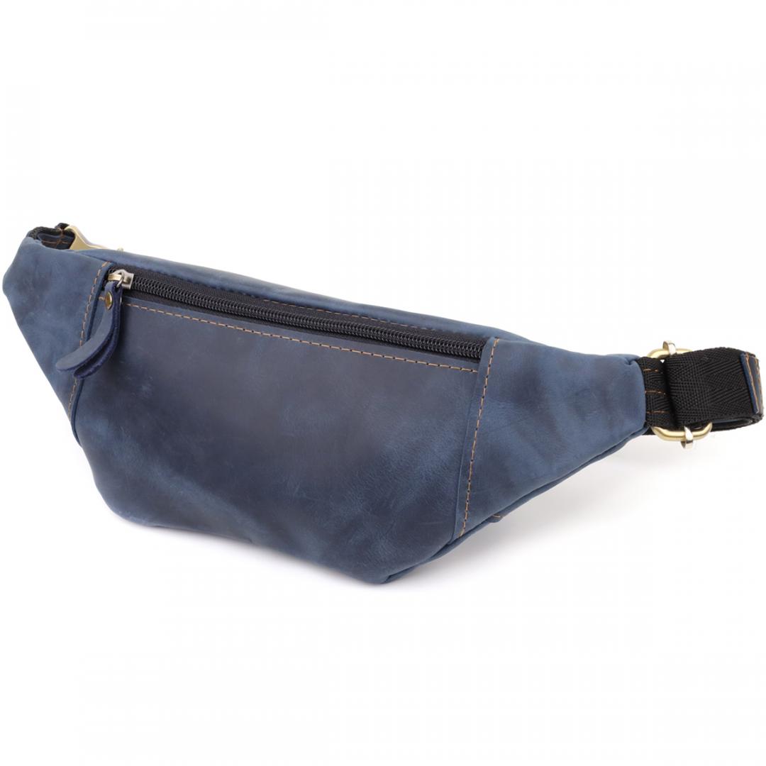 Описание: Красивая сумка-бананка для мужчин из натуральной винтажной кожи Shvigel 23123 Синий