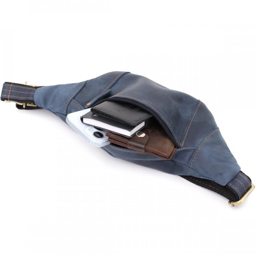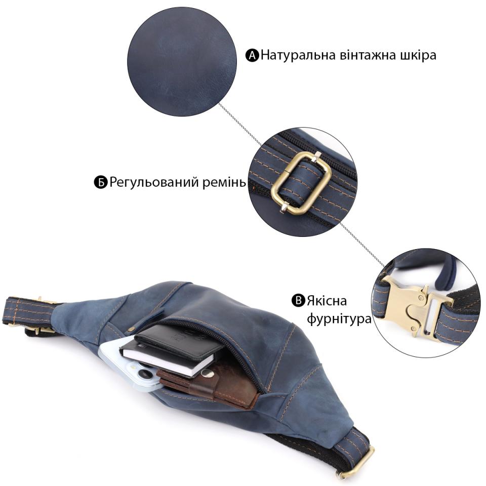 Характеристики: Красивая сумка-бананка для мужчин из натуральной винтажной кожи Shvigel 23123 Синий