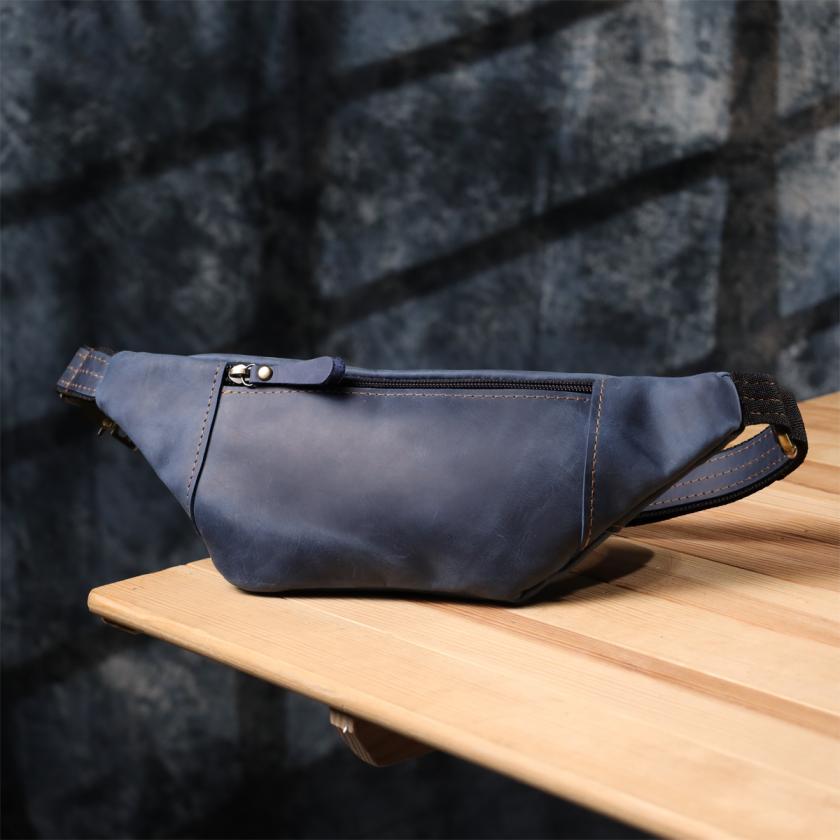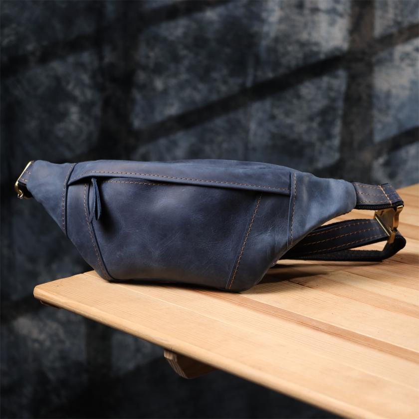 Отзывы: Красивая сумка-бананка для мужчин из натуральной винтажной кожи Shvigel 23123 Синий