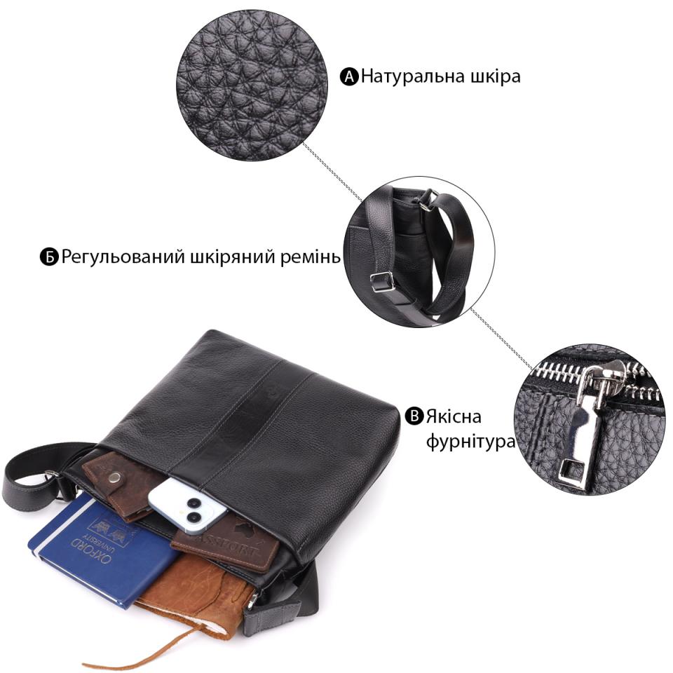 Характеристики: Красивая сумка через плечо для мужчин из натуральной кожи GRANDE PELLE 22883 Черная