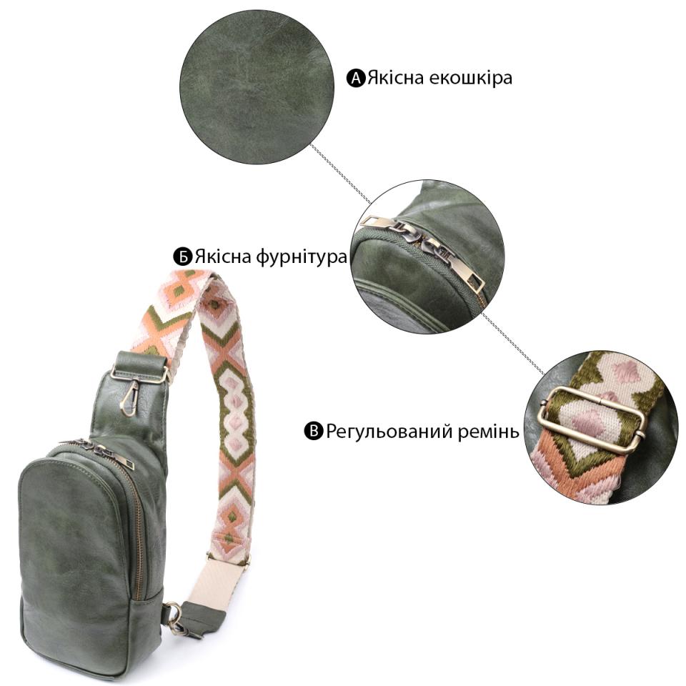 Красивая сумка через плечо в модном цвете из экокожи Vintage 22791 Зеленый