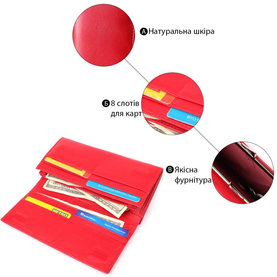 Характеристики: Красивый кошелек для женщин с монетницей из натуральной кожи ST Leather 23105 Красный