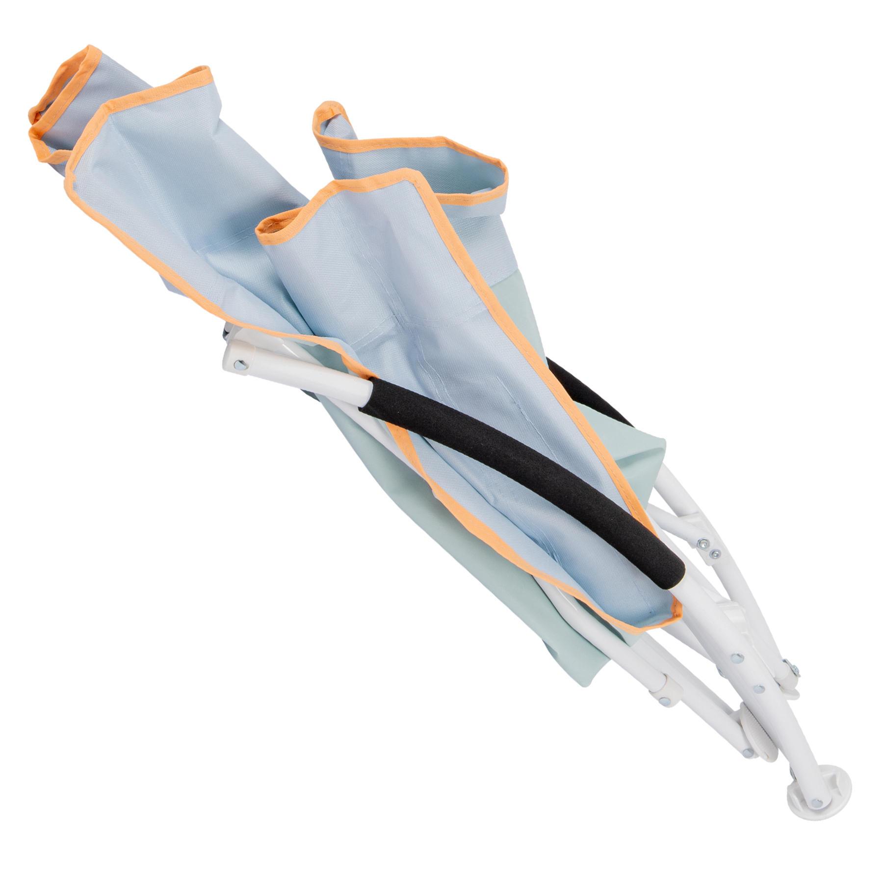 Крісло швидко складається, займає мінімум місця та зручно транспортується в комплектному чохлі. Ідеальне для пляжу, пікніків або відпочинку біля басейну.