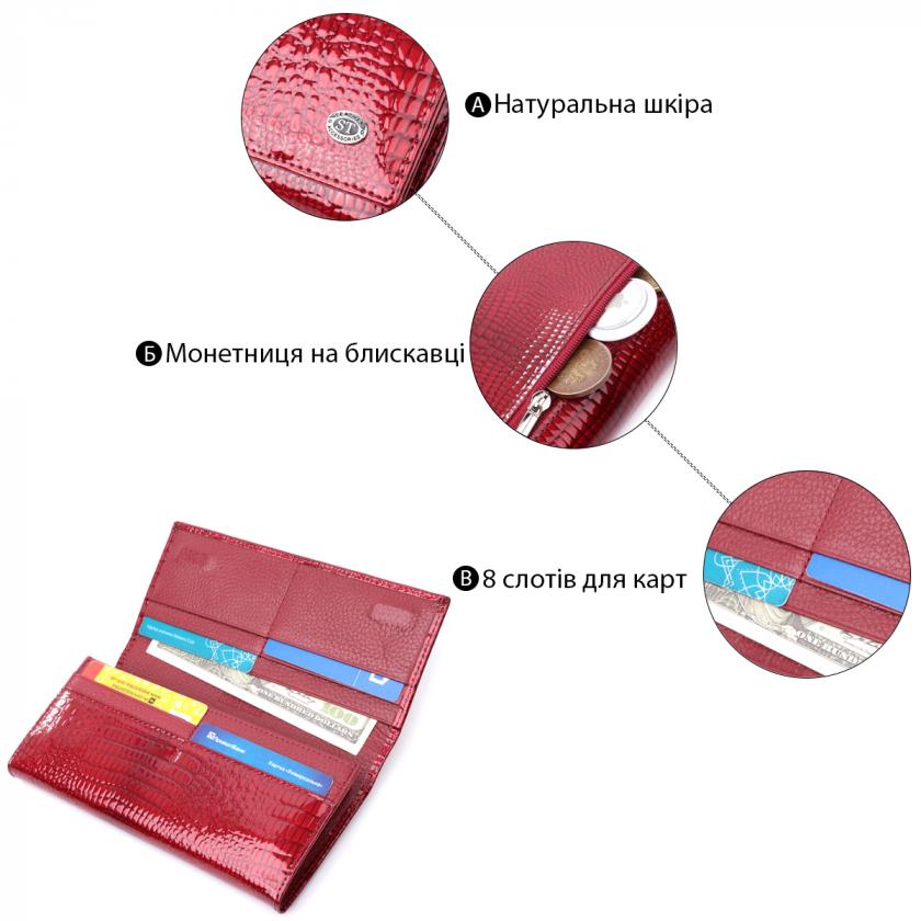 Характеристики: Лакированный женский кошелек с фактурой под рептилию из натуральной кожи ST Leather 22717 Красный