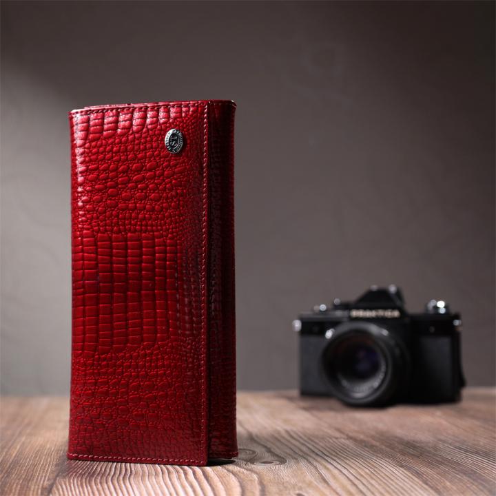 Отзывы: Лакированный женский кошелек с фактурой под рептилию из натуральной кожи ST Leather 22717 Красный