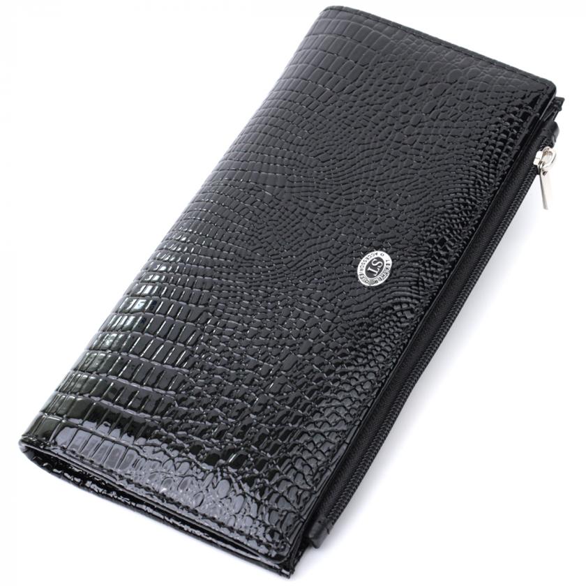 Отзывы: Лакированный тонкий кошелек с фактурой под рептилию из натуральной кожи ST Leather 22716 Черный