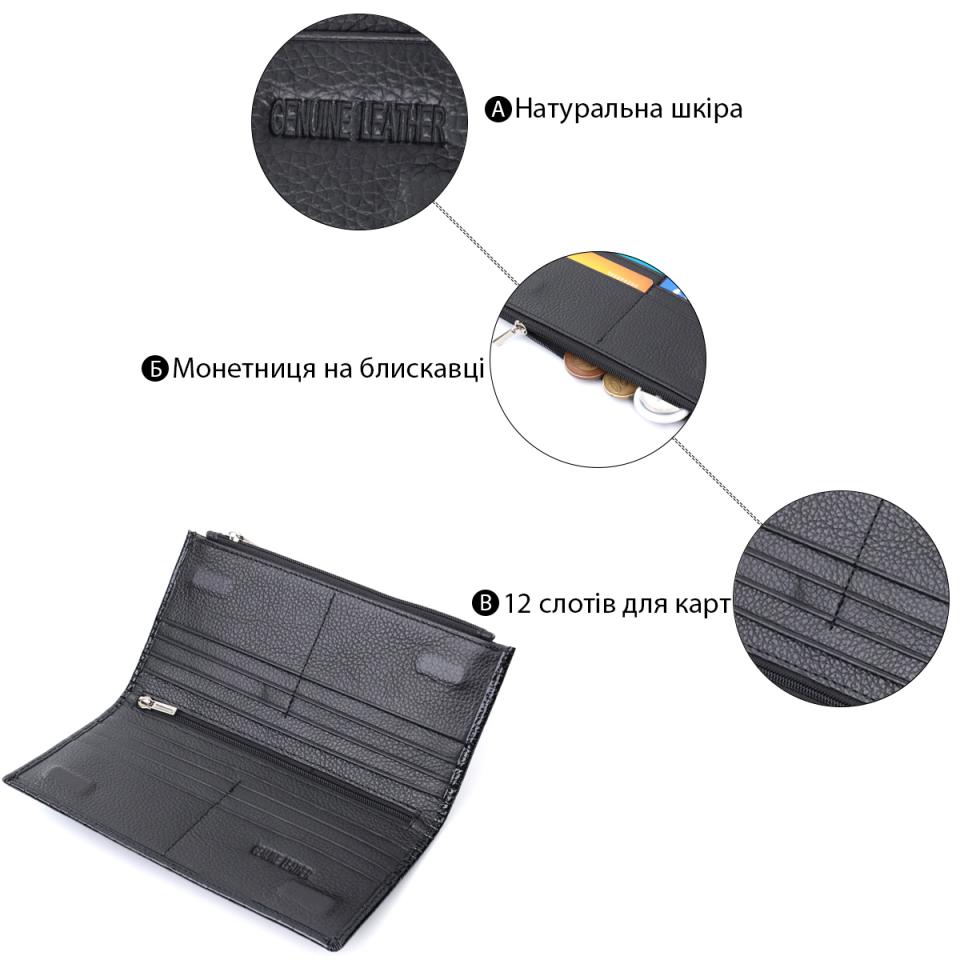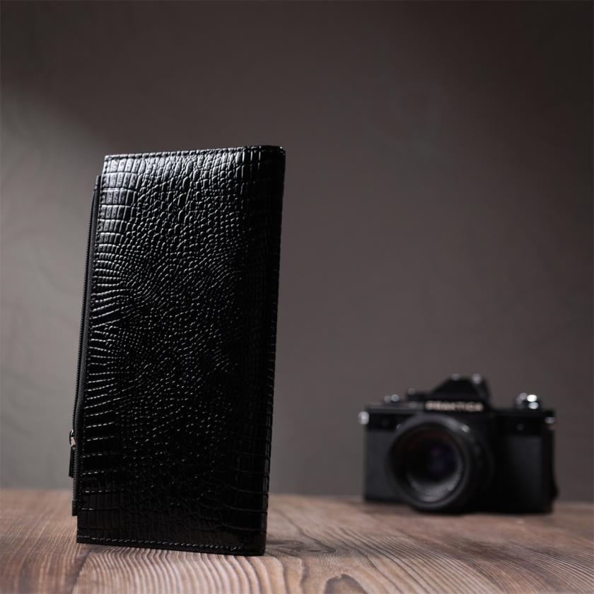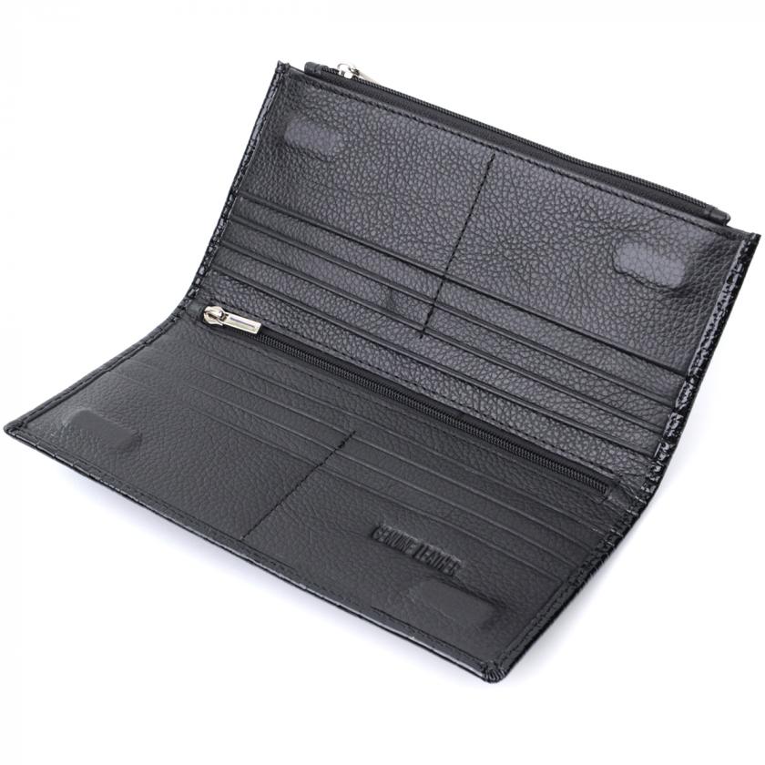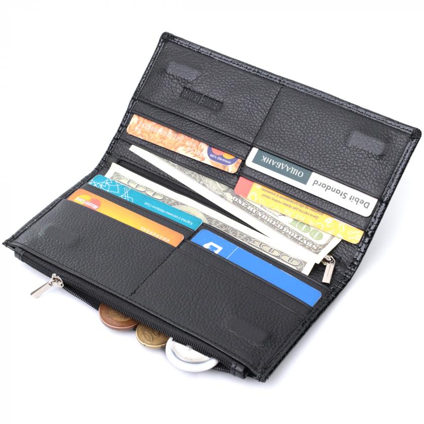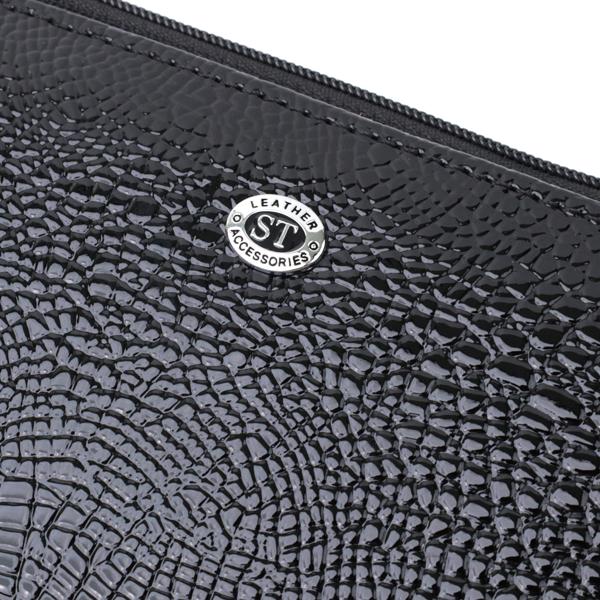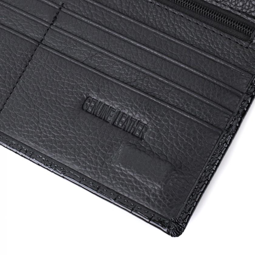 Характеристики: Лакированный тонкий кошелек с фактурой под рептилию из натуральной кожи ST Leather 22716 Черный