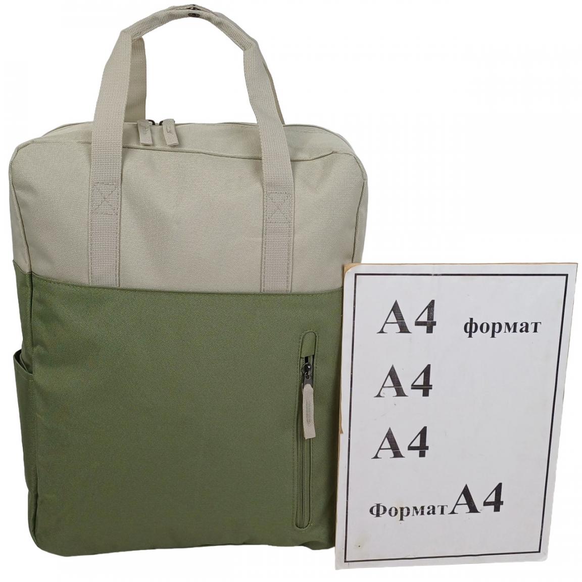 Легкая сумка - рюкзак 2 в 1 Live in style бежевая с оливковым