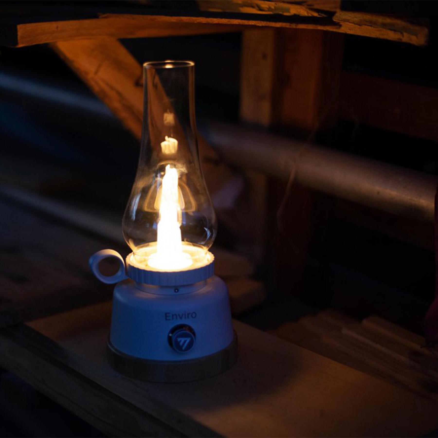 Mactronic Enviro - це кемпінговий ліхтар, виконаний в класичному стилі гасової лампи. Він обладнаний світлодіодами Epistar SMD 2835, та може світити в 3 різних режимах: теплий білий, імітація полум'я і холодний білий. Колба виконана з якісного міцного скла великої товщини, що легко витримає перекидання ліхтаря та випадкові удари. Завдяки потужному акумулятору ліхтар може працювати до 75 годин в економічному режимі, а також слугувати в якості повербанку для мобільних пристроїв (USB, 5 V, 1 A).