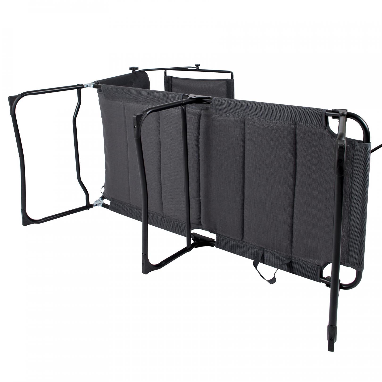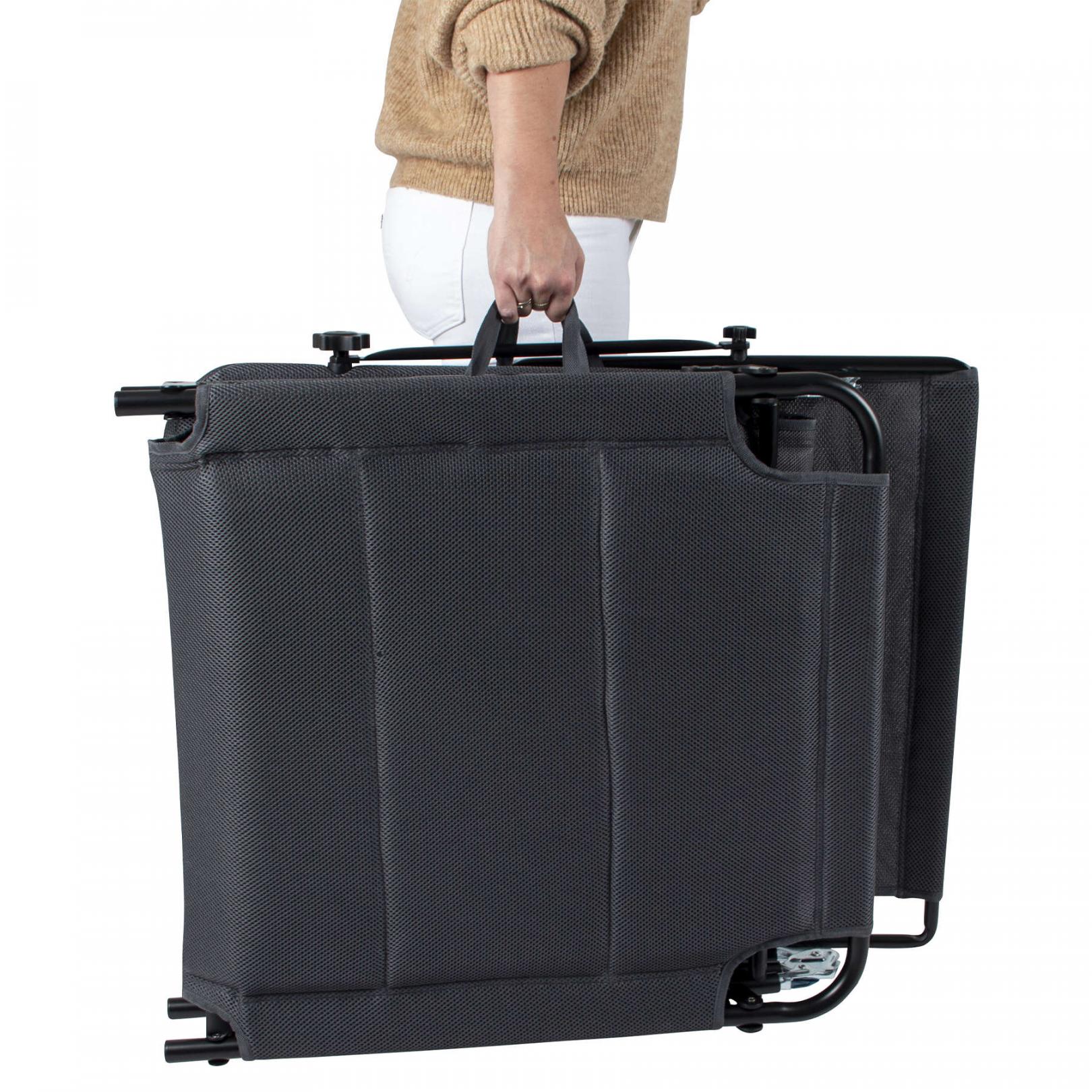 Ліжко має продуманий механізм регулювання спинки, що дозволяє обрати оптимальне положення для сну, читання чи просто релаксу. У складеному вигляді займає мінімум місця, важить лише 5.2 кг і має зручні ручки для перенесення. Широке сидіння та стабільна конструкція дозволяють витримувати навантаження до 120 кг, а ніжки впевнено стоять навіть на нерівній поверхні. Завдяки компактному розміру у складеному стані, Bo-Camp Sun Lounger завжди зручно взяти із собою в багажнику автомобіля.