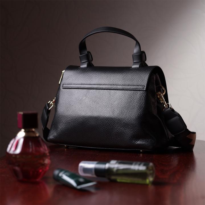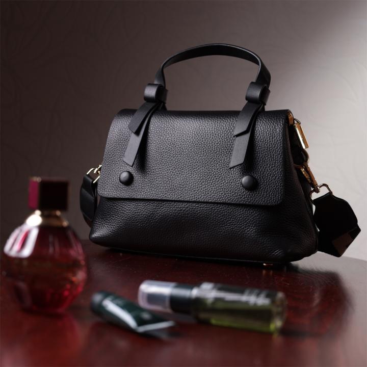 Отзывы: Люксовая сумка для женщин с короткой ручкой из натуральной кожи Vintage 22670 Черная