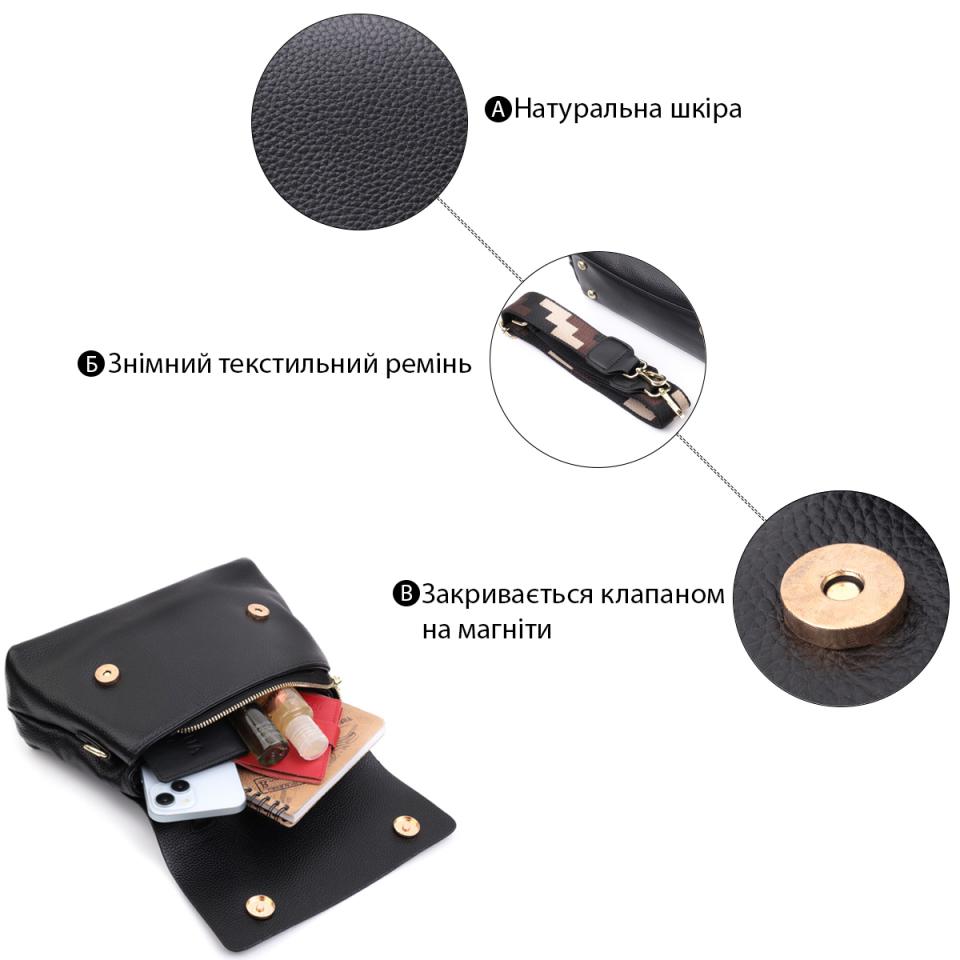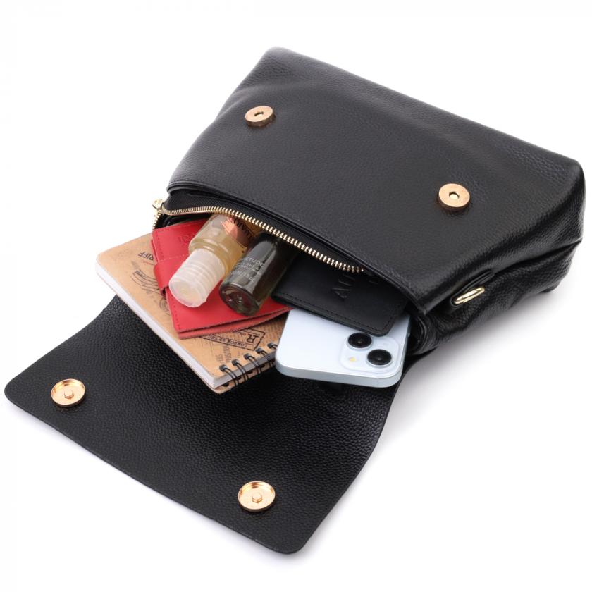 Люксовая сумка для женщин с короткой ручкой из натуральной кожи Vintage 22670 Черная