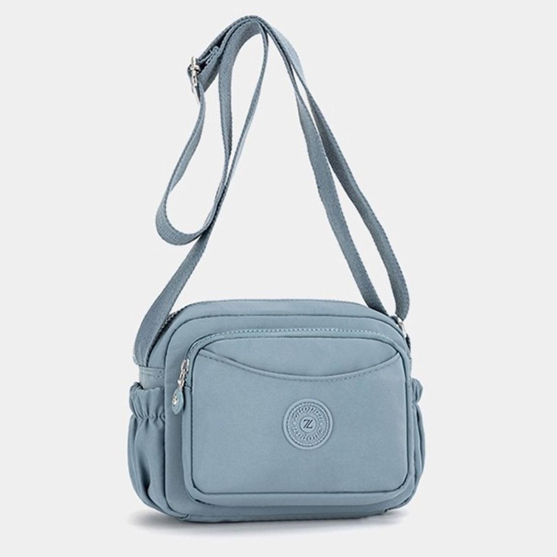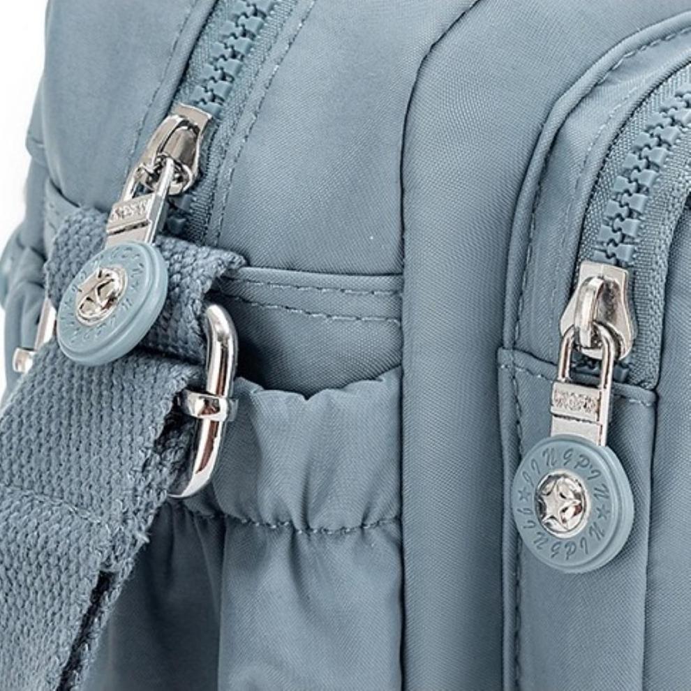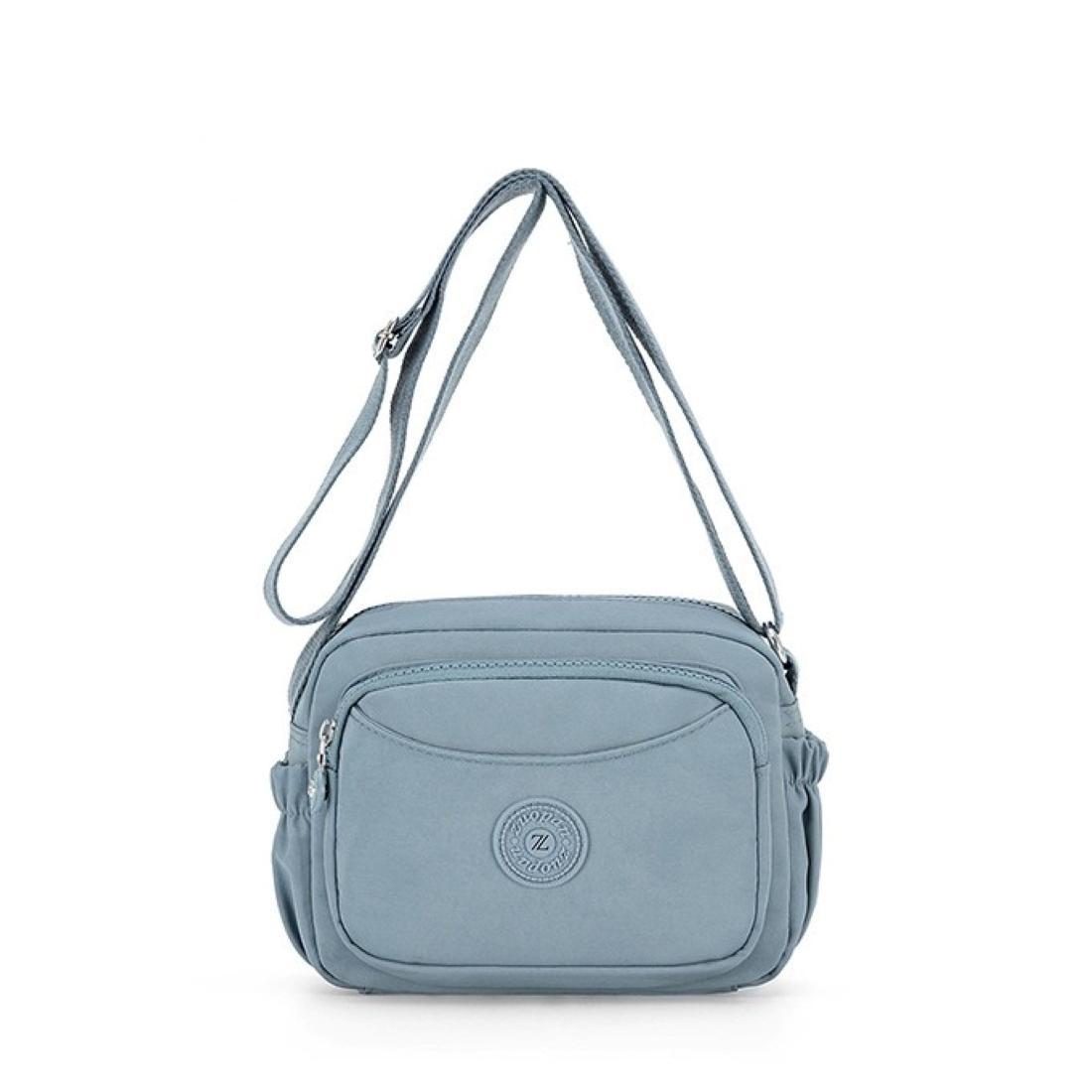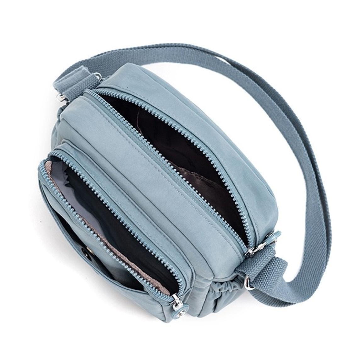 Компактный голубой кросс-боди из водоотталкивающей ткани – это практичная повседневная модель для города.