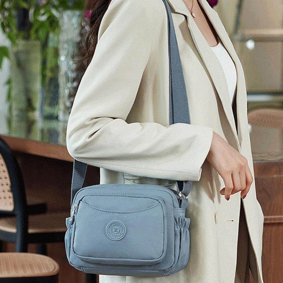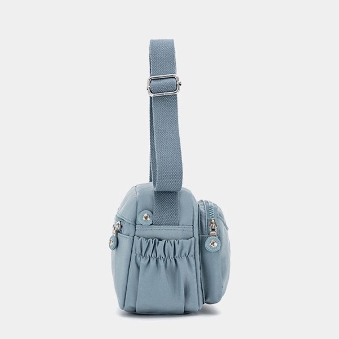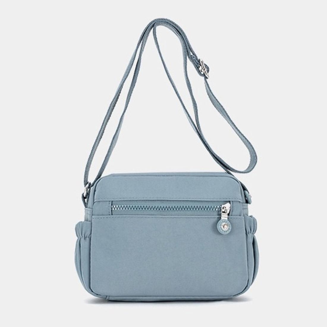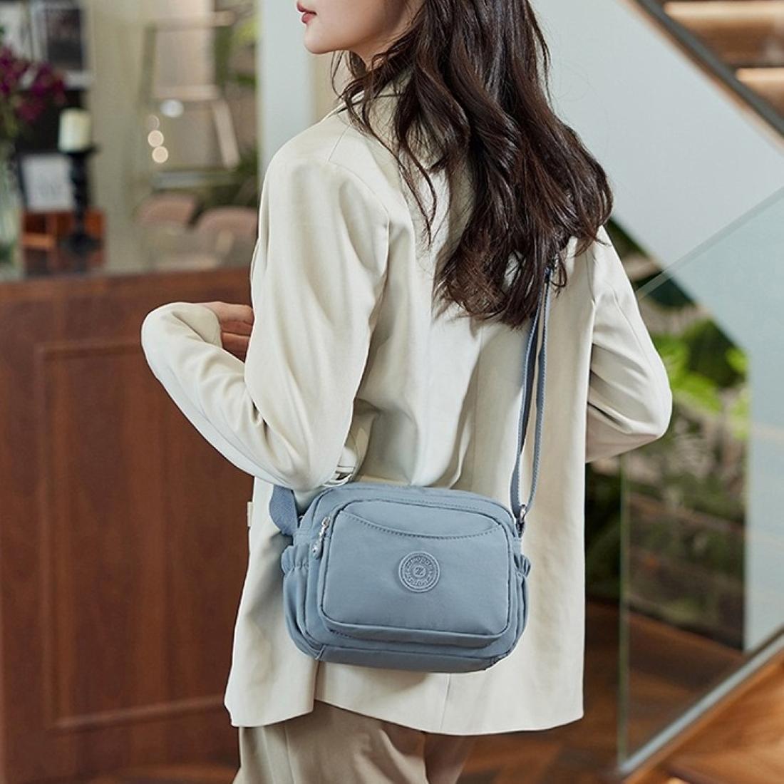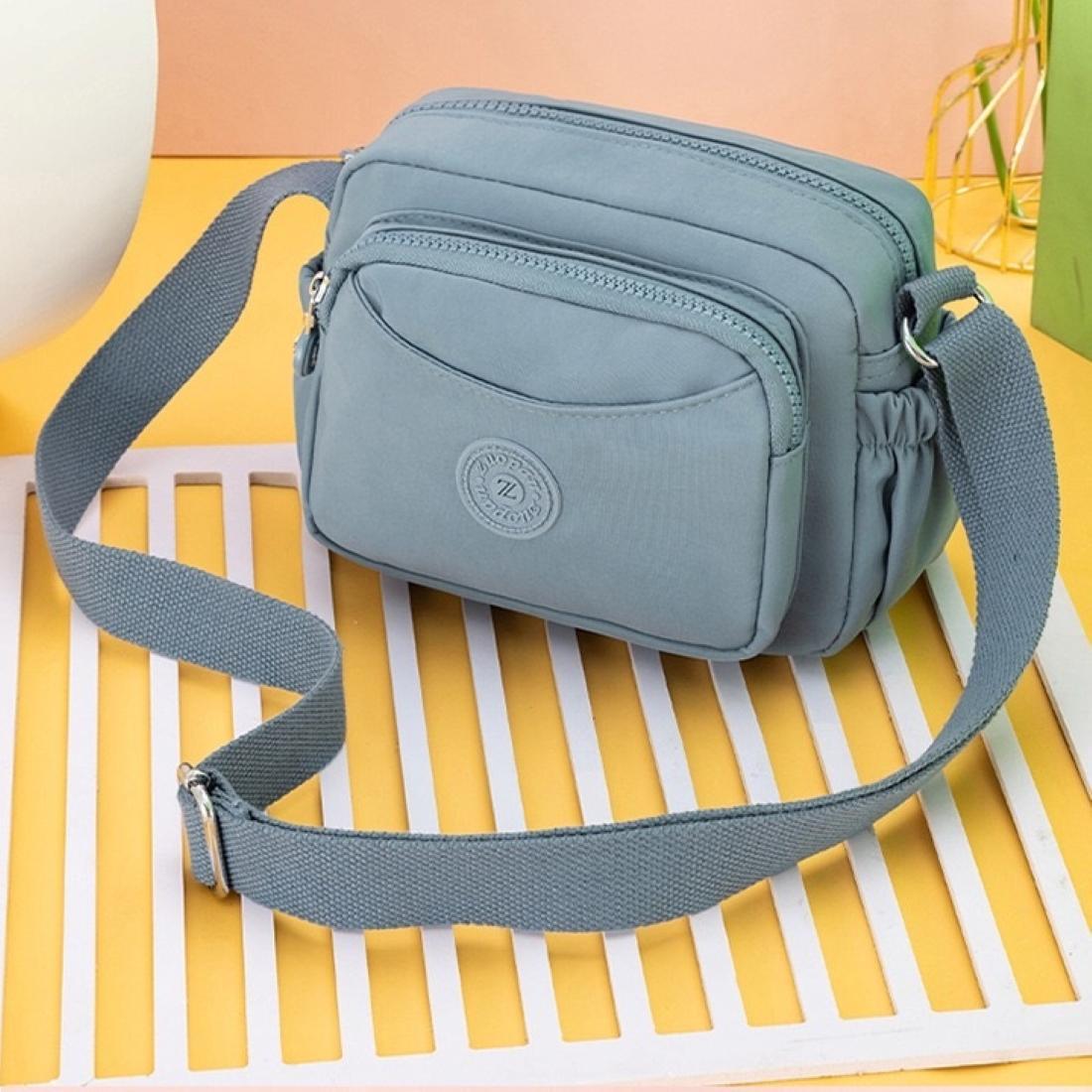 Компактный голубой кросс-боди из водоотталкивающей ткани – это практичная повседневная модель для города.