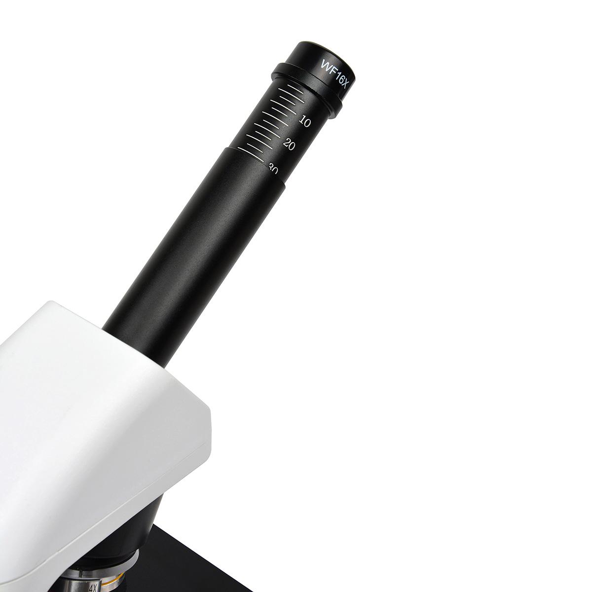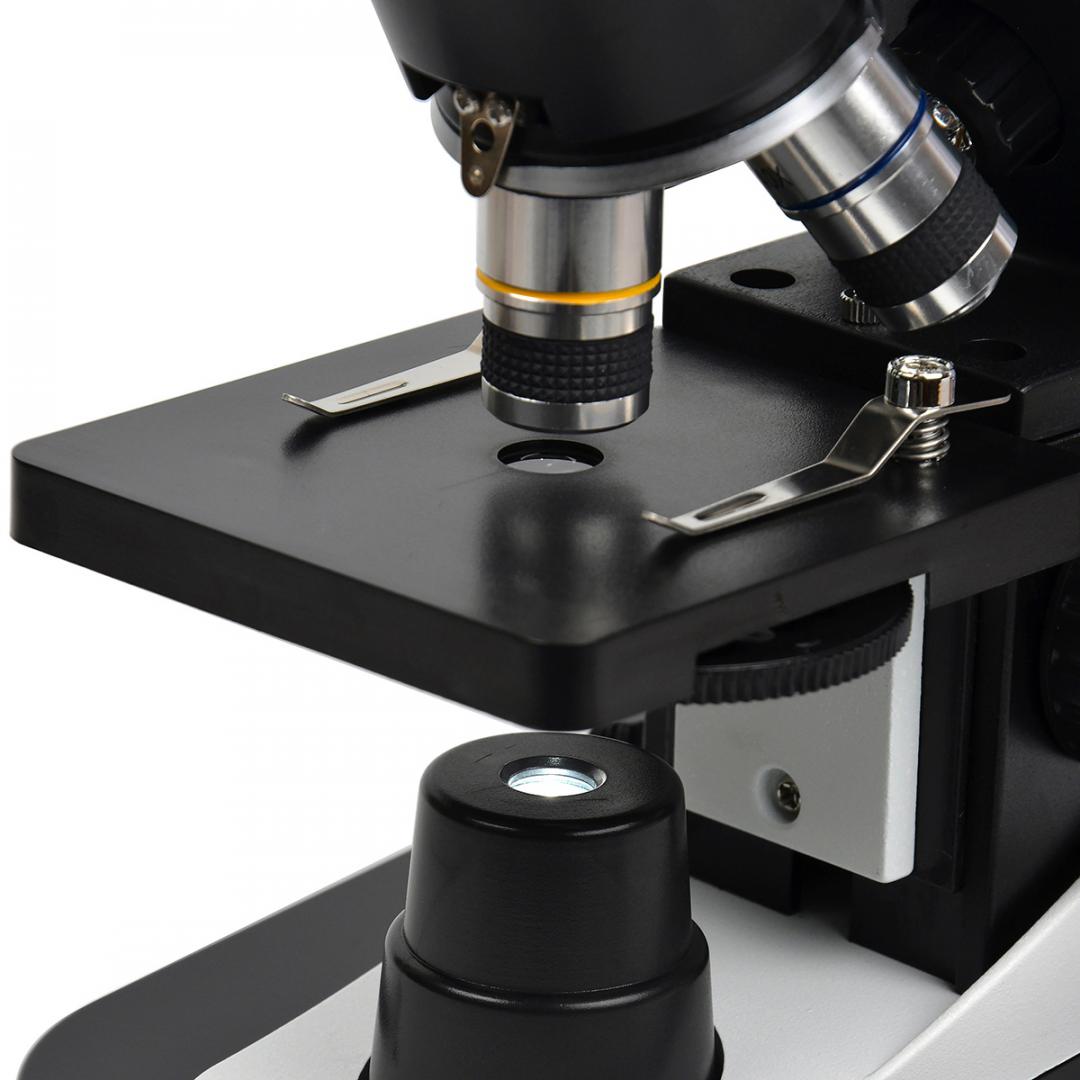 - Збільшення з комплектними окулярами і об'єктивами: 40x, 64x, 100x, 160x, 400x, 640x