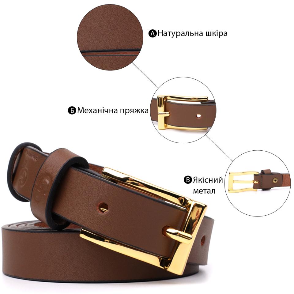 Характеристики: Модный узкий кожаный ремень для женщин GRANDE PELLE 22954 Светло-коричневый