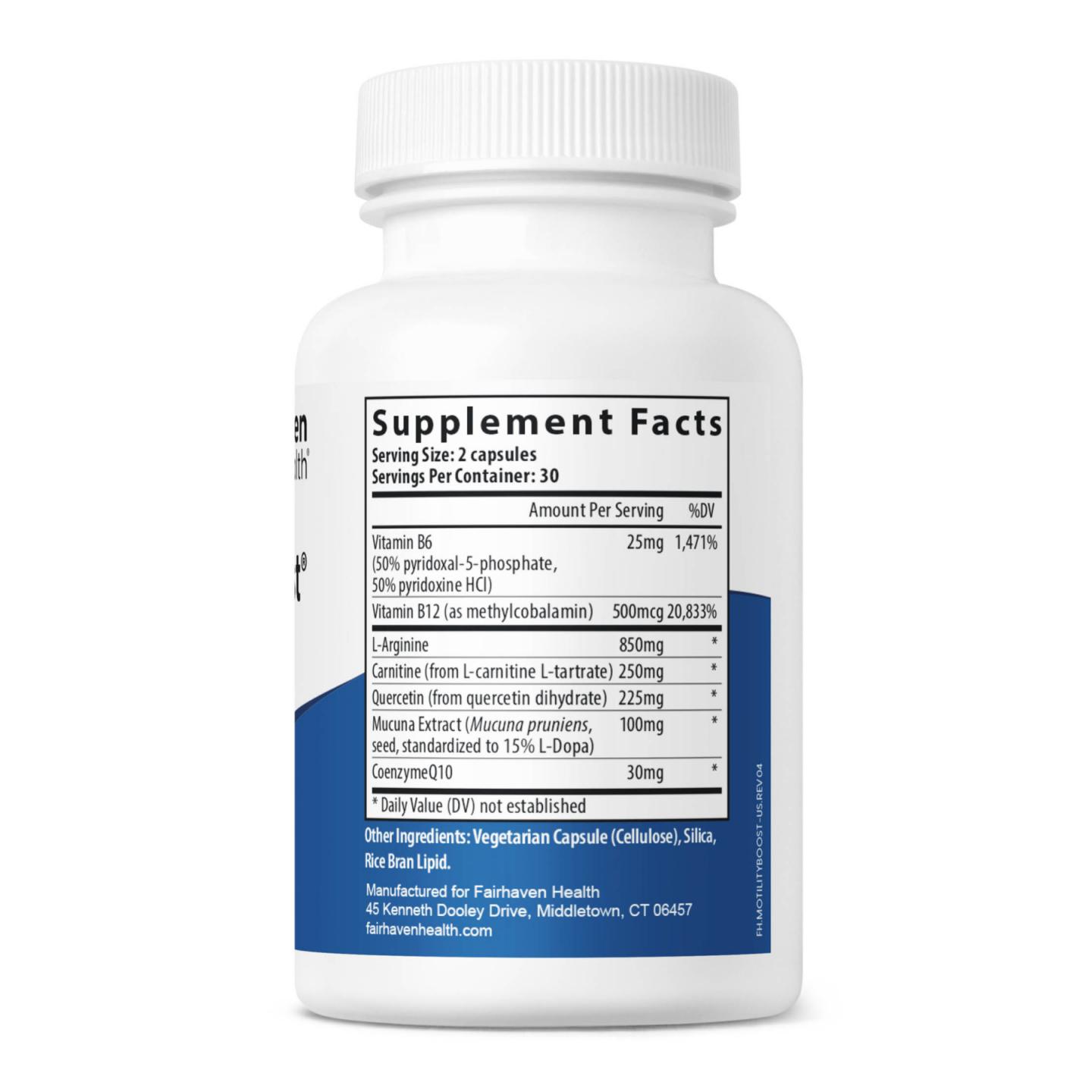 MotilityBoost® содержит ключевые антиоксиданты, витамины, растения и специальные питательные вещества для поддержания подвижности сперматозоидов. Разработано для приема вместе с FertilAid® для мужчин.