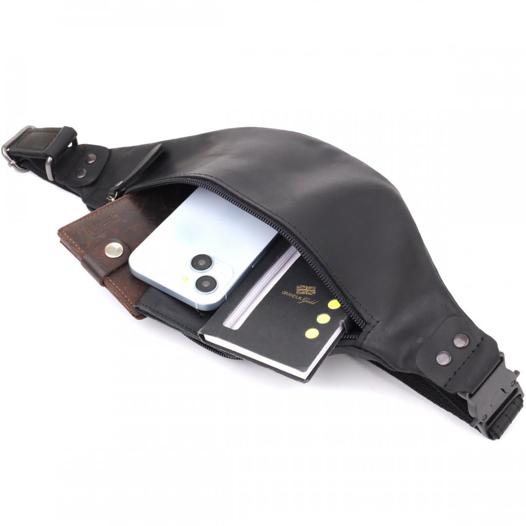 Мужская бананка из натуральной винтажной кожи Shvigel 23129 Черный