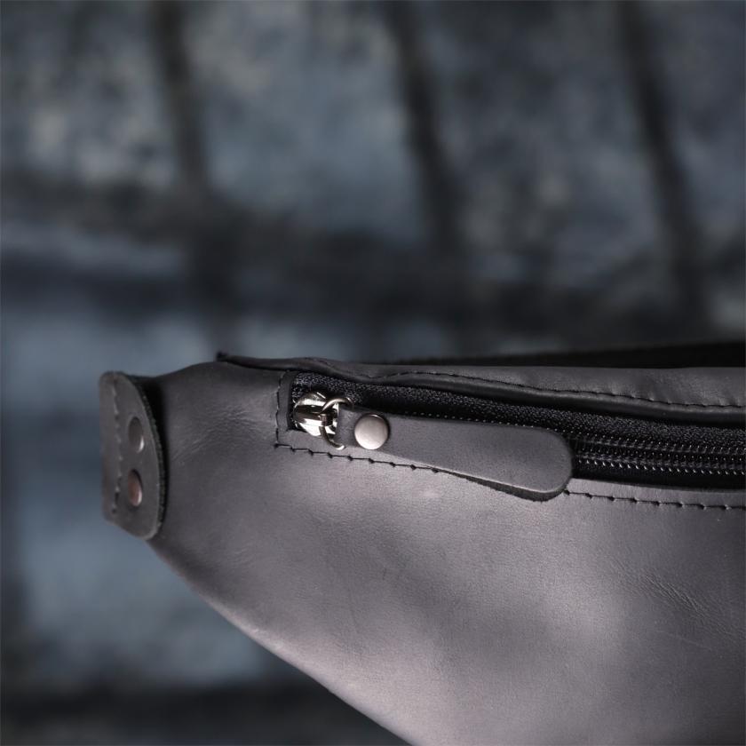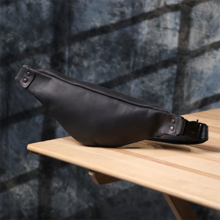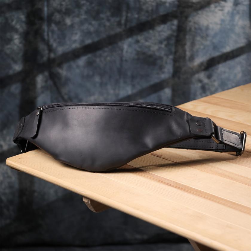Мужская сумка-бананка из винтажной натуральной кожи в чёрном цвете — стиль, проверенный временем. Эта стильная мужская сумка-бананка от украинского бренда Shvigel выполнена из натуральной винтажной кожи, что придаёт ей характер и благородную фактуру. Благодаря качественной обработке кожа не только выглядит роскошно, но и обладает высокой износостойкостью — аксессуар прослужит долго, не теряя эстетического вида.