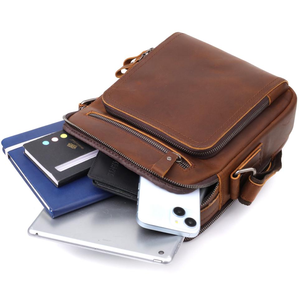 Мужская деловая сумка с ручкой для переноса в руке из натуральной кожи Vintage 23033 Коричневый
