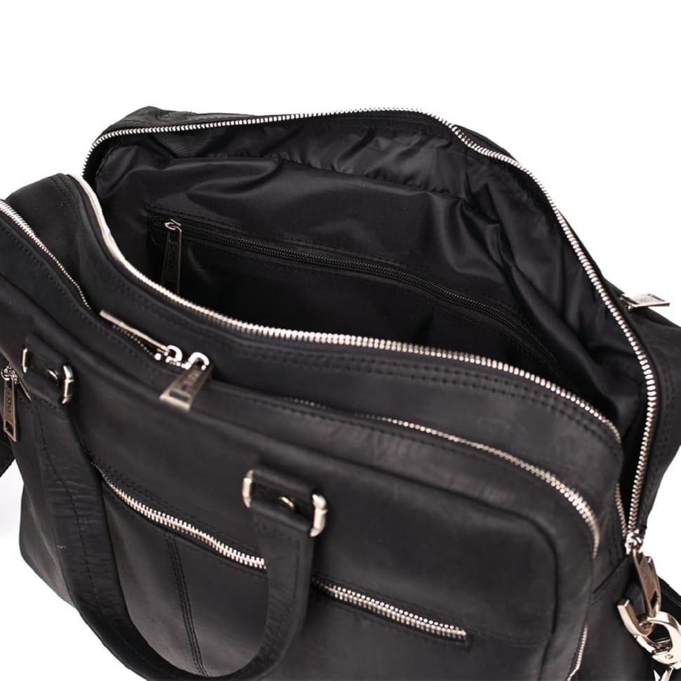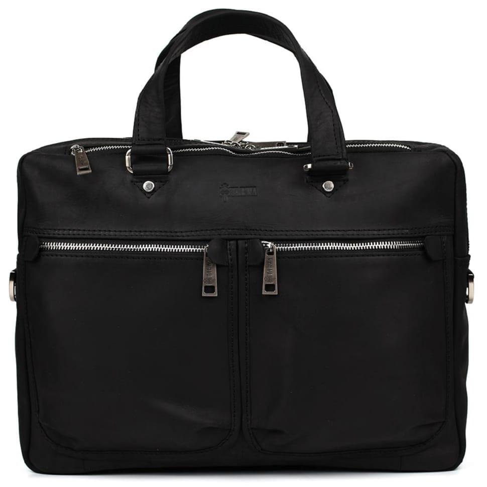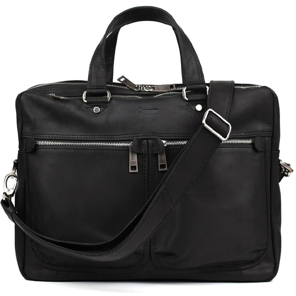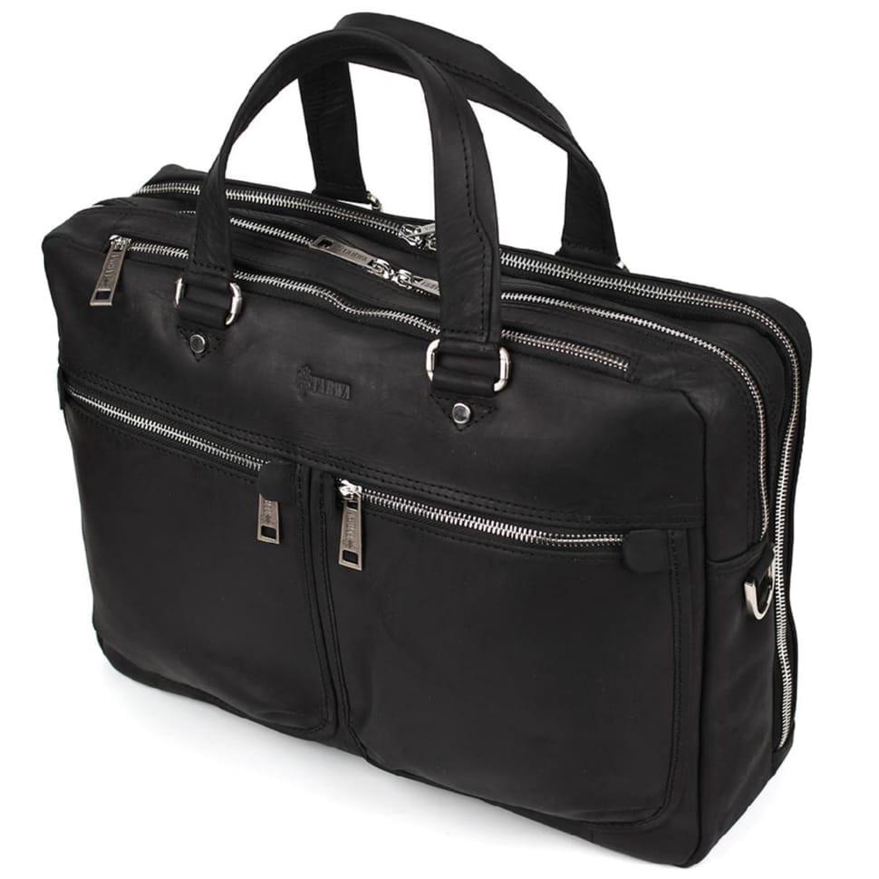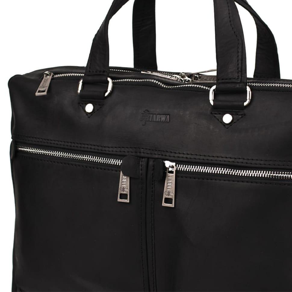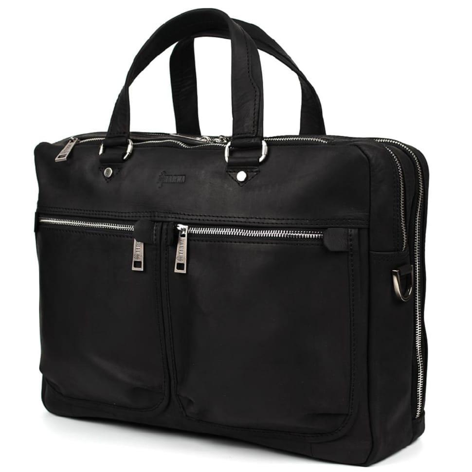 Мужская кожаная деловая сумка черная RA-4664-4lx TARWA на два отделения15" для ноутбука и документов, из натуральной кожи выделки Крейзи Хорс, от украинского бренда TARWA