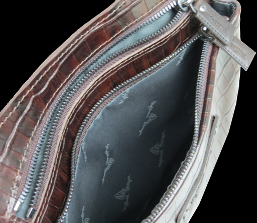 Съемный регулируемый наплечный ремень выполнен в сочетании натуральной кожи и нейлона.
