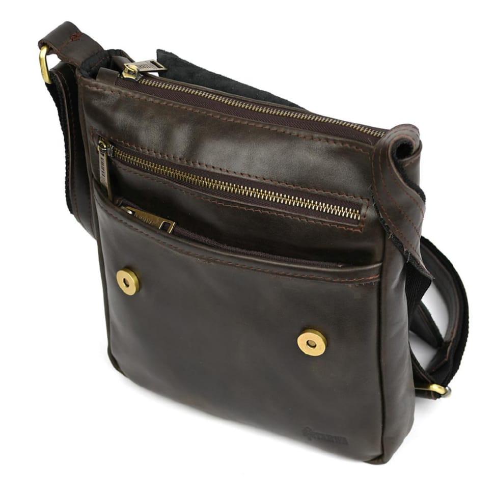 Красивая, компактная мужская сумка через плечо TC-1301-3md от украинского бренда TARWA. Модель может вмещать документы формата А5, планшет. Кожаный клапан, все карманы на металлических молниях. Доступна в цветовой палитре
