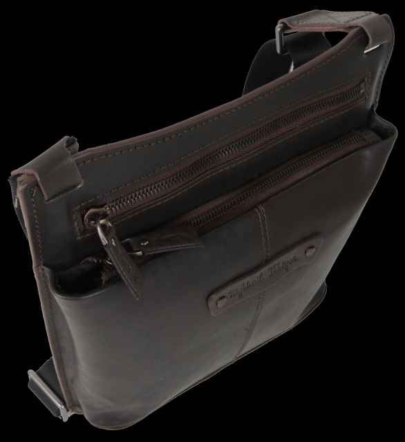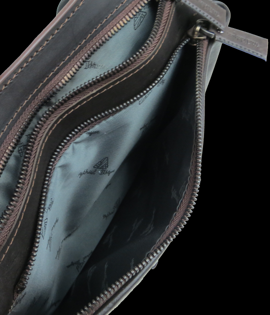 Съемный регулируемый наплечный ремень выполнен в сочетании натуральной кожи и нейлона.