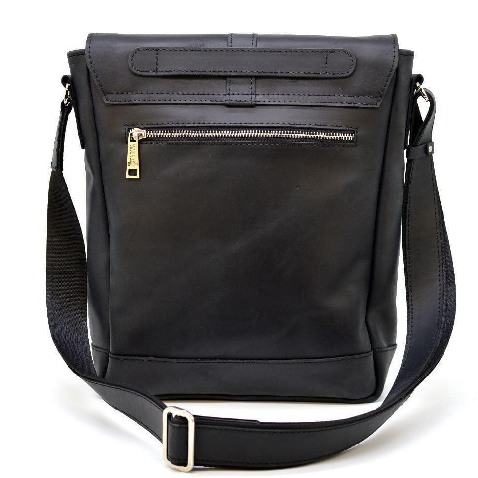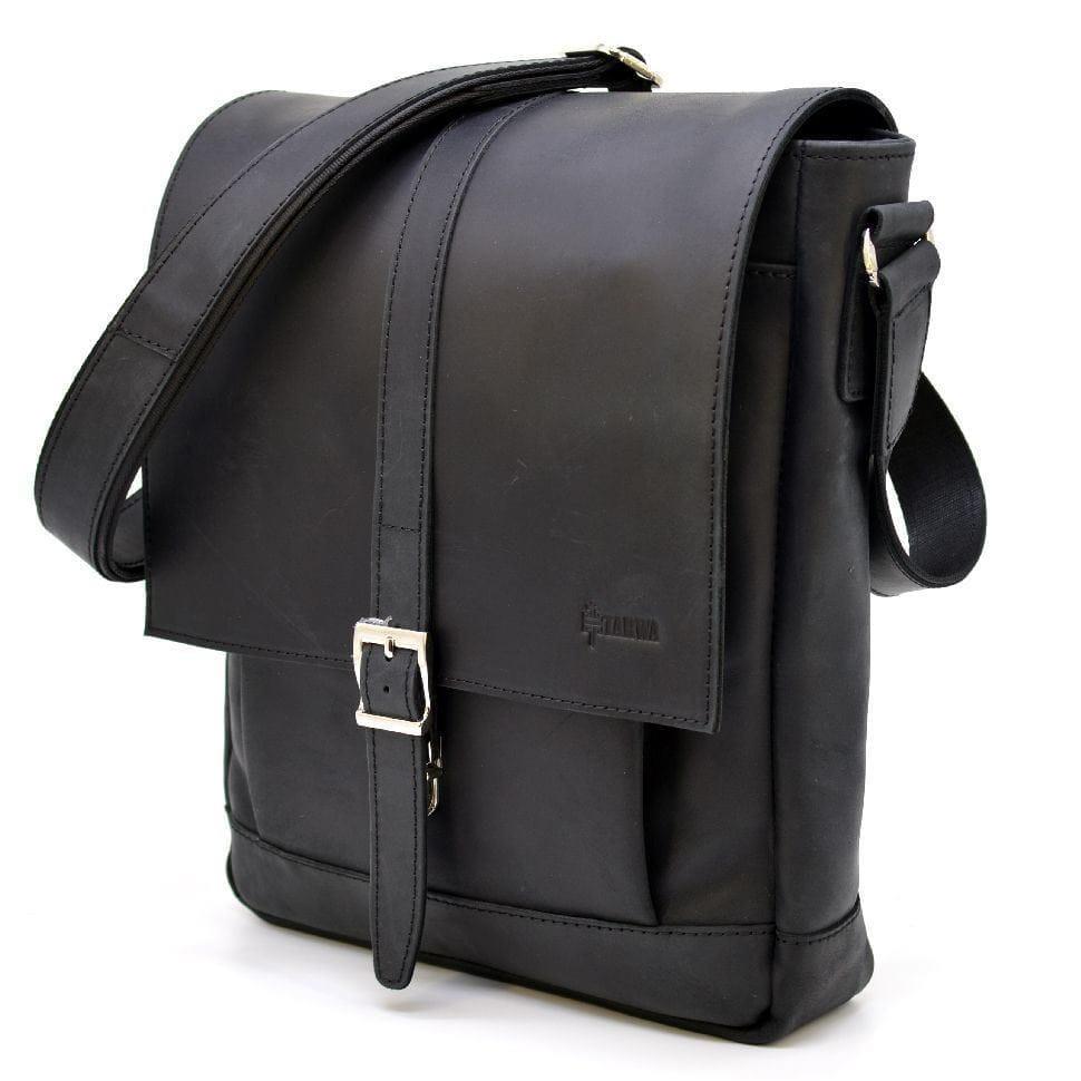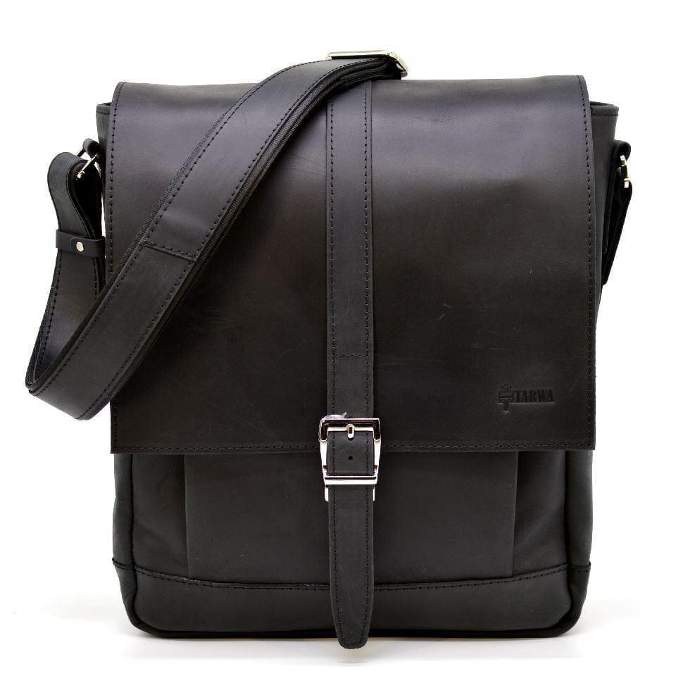 Мужская вертикальная сумка через плечо, из натуральной матовой кожи черного цвета RA-1811-4lx, от украинского бренда TARWA. Вмещает формат А4.