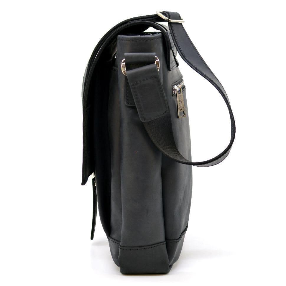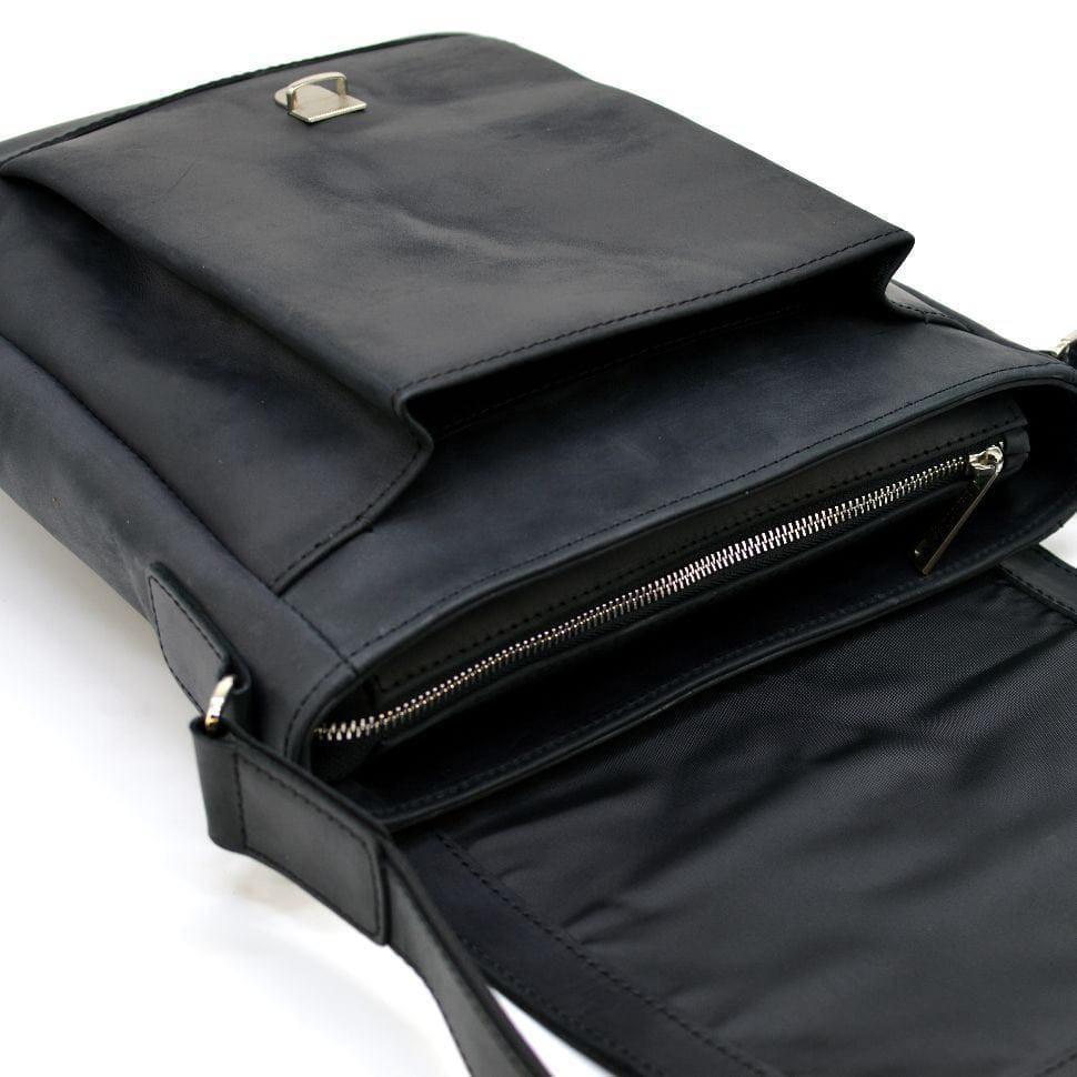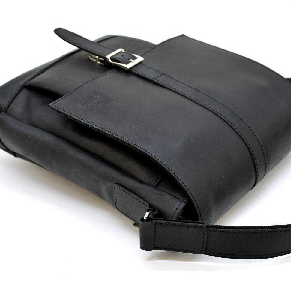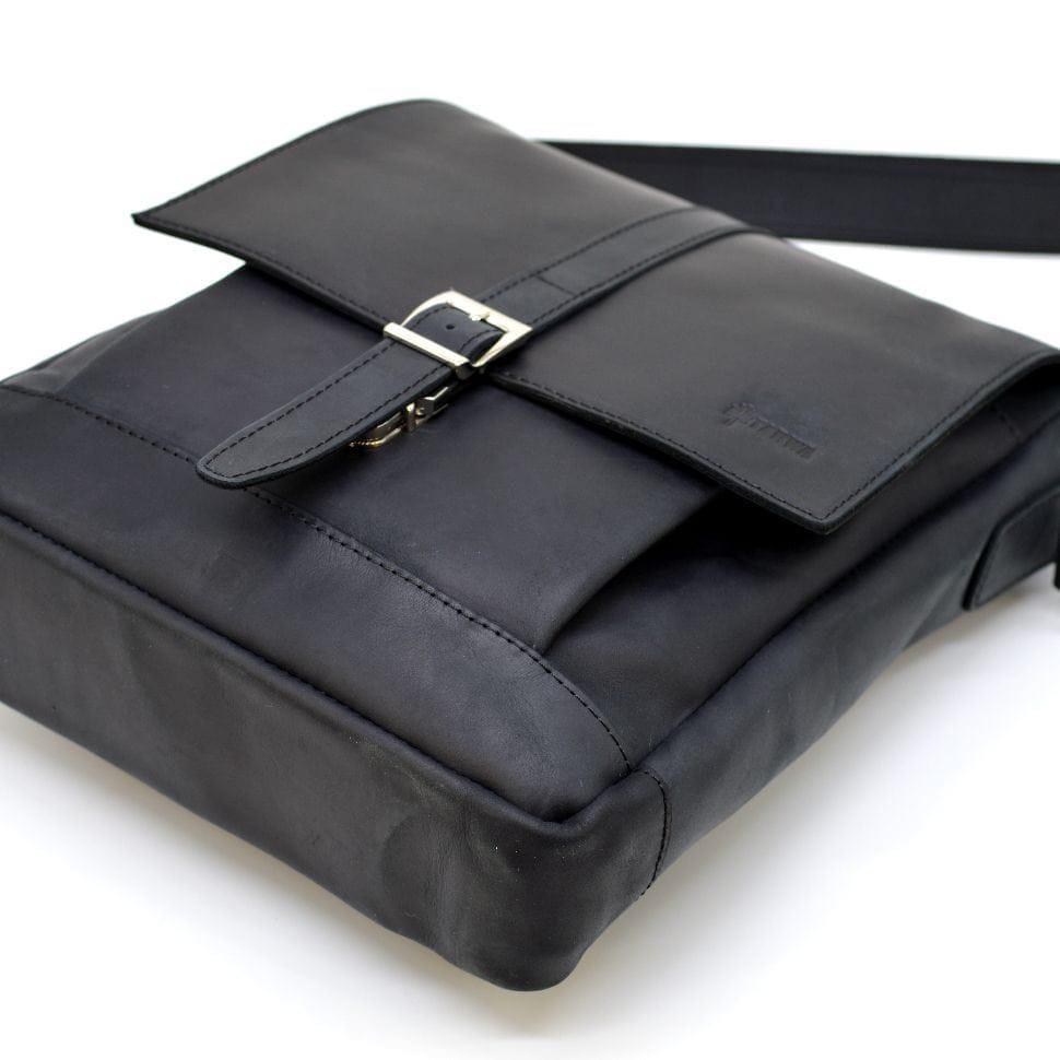 Мужская вертикальная сумка через плечо, из натуральной матовой кожи черного цвета RA-1811-4lx, от украинского бренда TARWA. Вмещает формат А4.