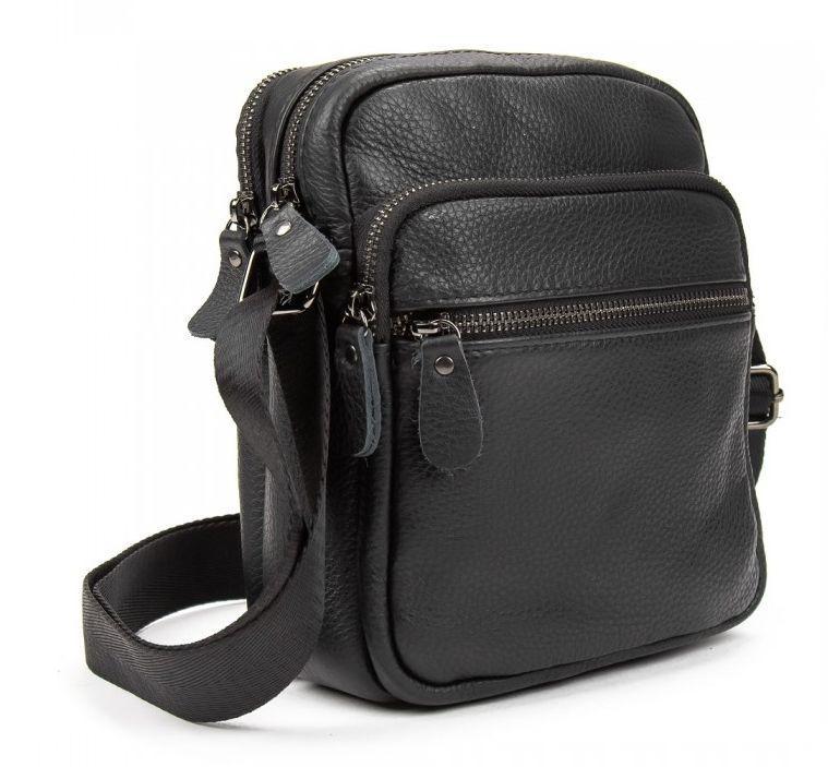 Мужская кожаная сумка планшетка Tiding Bag черная