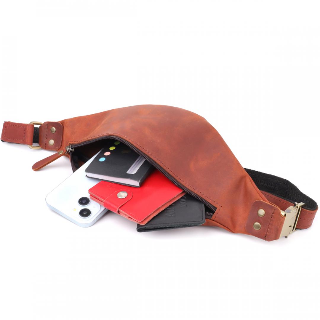 Характеристики: Мужская практичная бананка из натуральной винтажной кожи Shvigel 23131 Рыжий