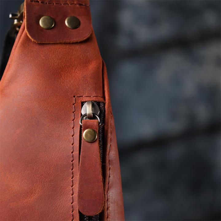 Мужская сумка-бананка из винтажной рыжей кожи — яркий акцент вашего образа. Эта сумка-бананка изготовлена из натуральной кожи с выразительной винтажной фактурой и благородным рыжим оттенком, который делает аксессуар по-настоящему заметным и стильным. Тёплый рыжий цвет придаёт модели индивидуальность, подчёркивая природную красоту материала.