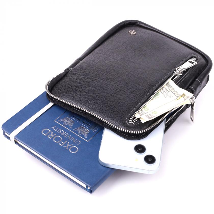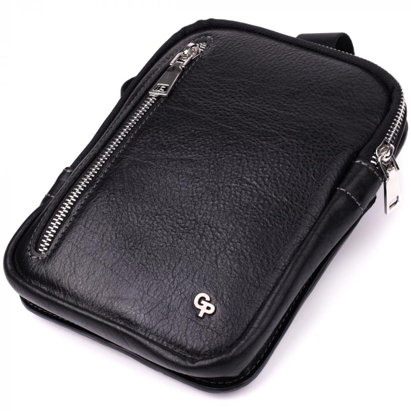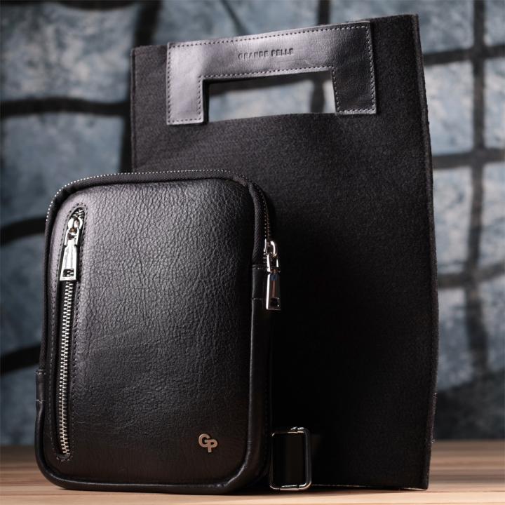Отзывы: Мужская прямоугольная сумка бананка из зернистой натуральной кожи GRANDE PELLE 22879 Черный