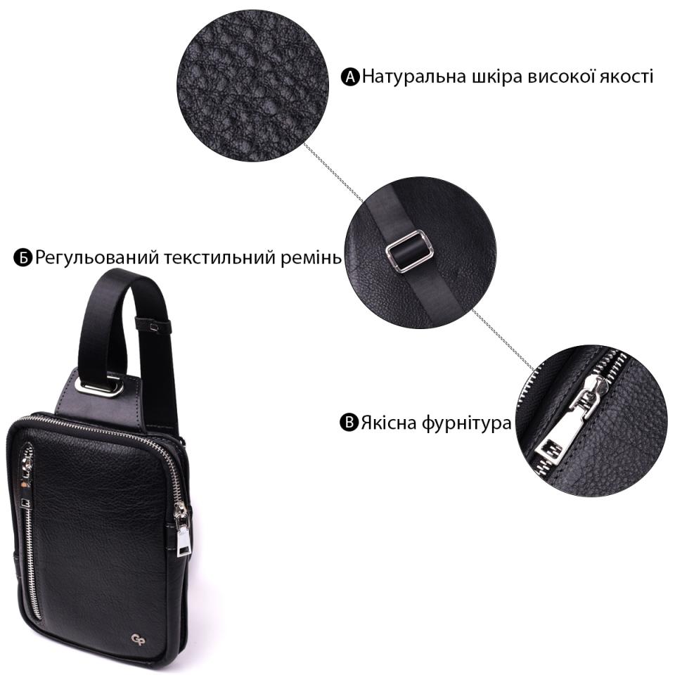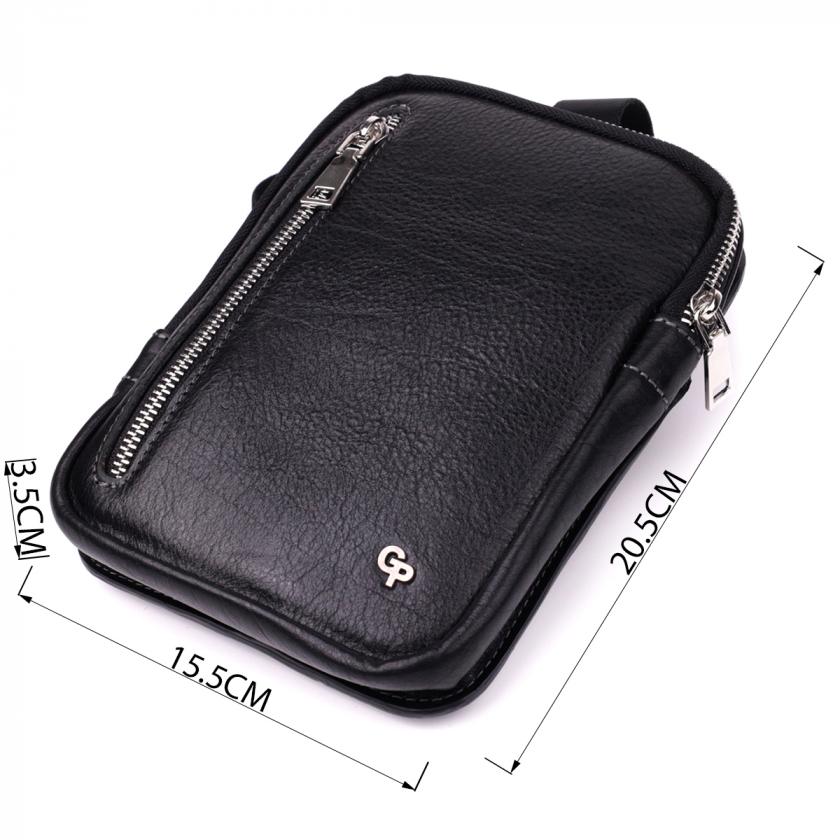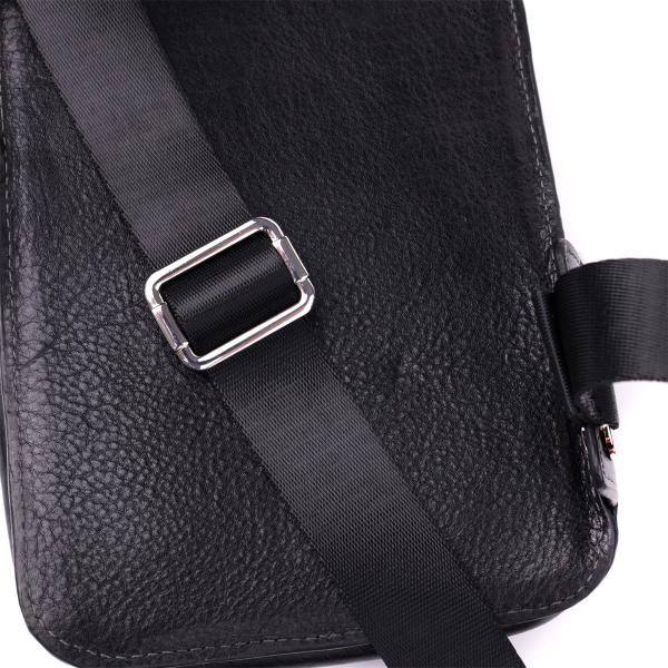 Характеристики: Мужская прямоугольная сумка бананка из зернистой натуральной кожи GRANDE PELLE 22879 Черный