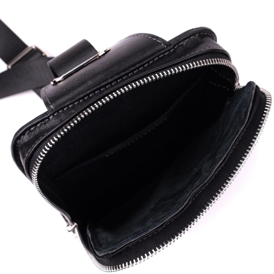 Мужская прямоугольная сумка бананка из зернистой натуральной кожи GRANDE PELLE 22879 Черный
