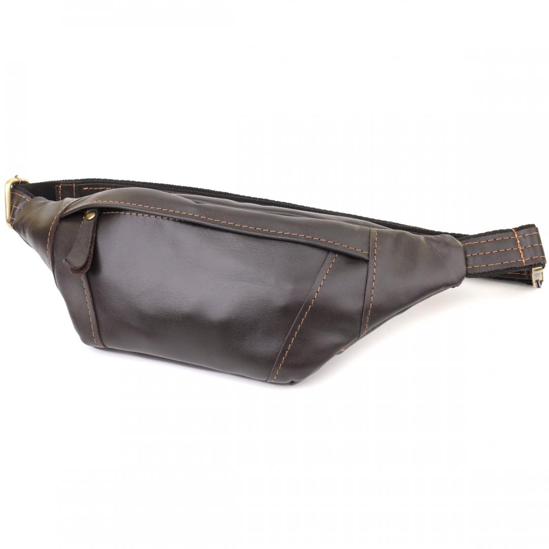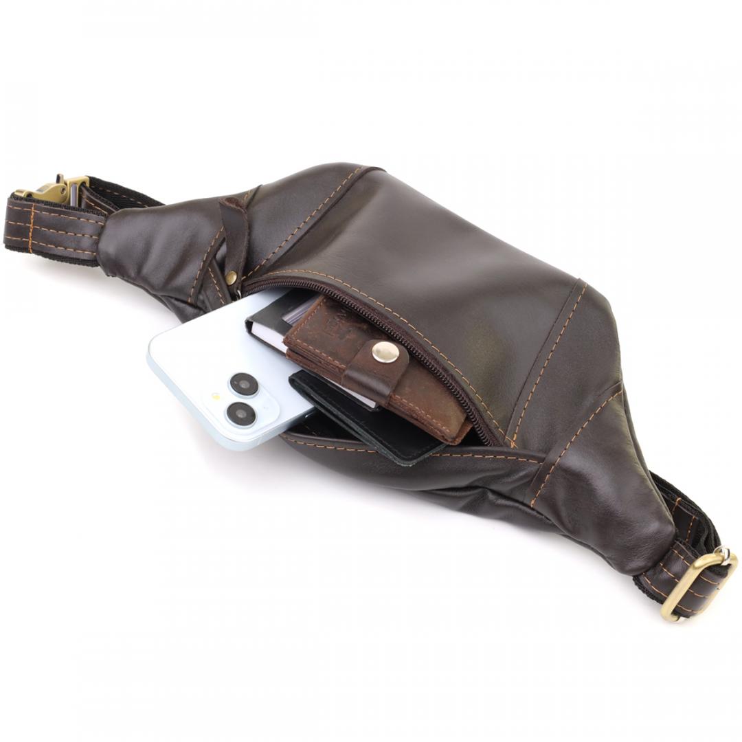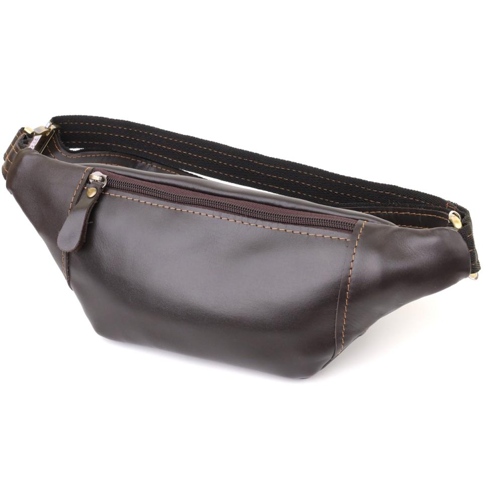Мужская сумка-бананка компактного размера из натуральной гладкой кожи Shvigel 23126 Коричневый