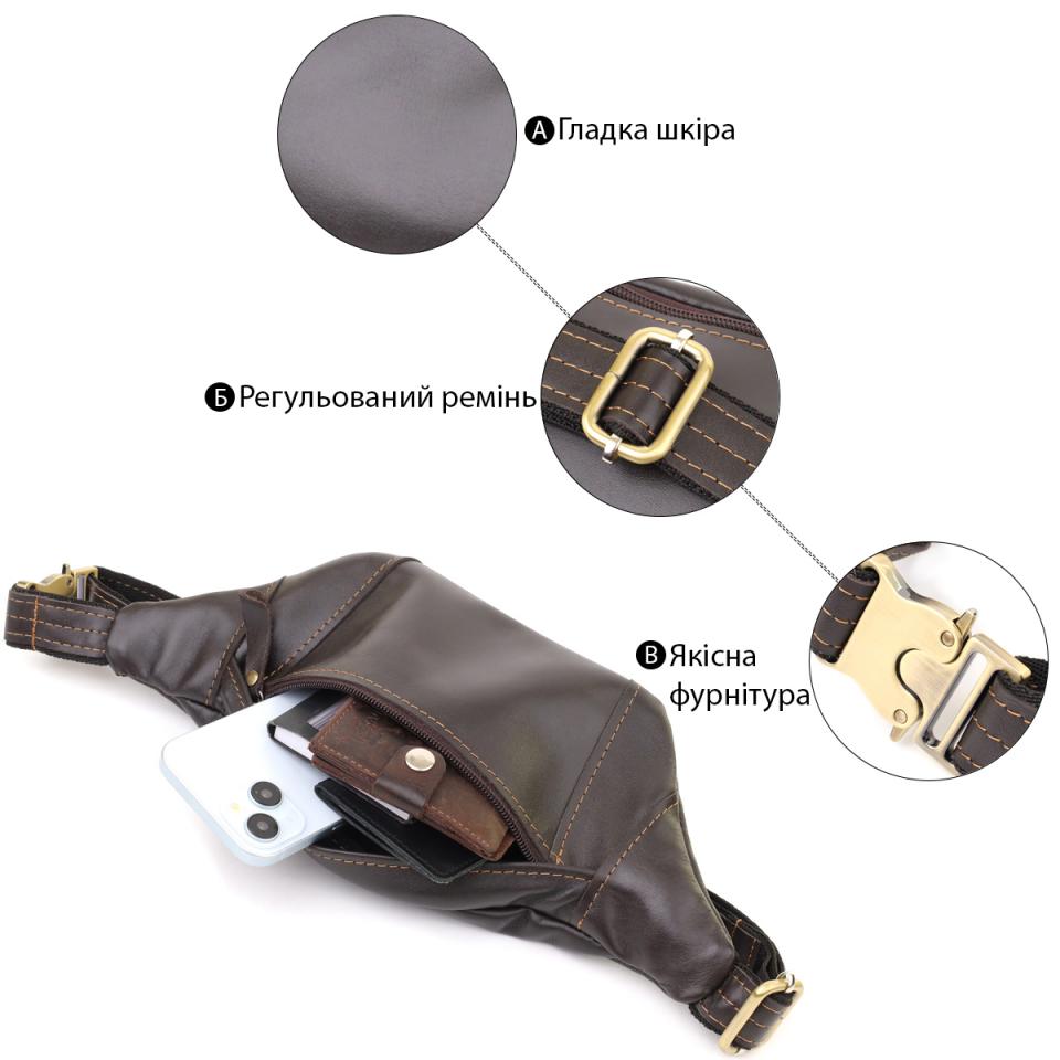 Характеристики: Мужская сумка-бананка компактного размера из натуральной гладкой кожи Shvigel 23126 Коричневый