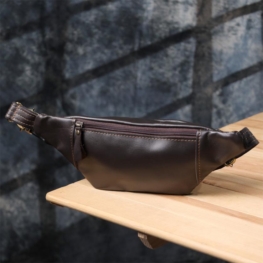 Отзывы: Мужская сумка-бананка компактного размера из натуральной гладкой кожи Shvigel 23126 Коричневый