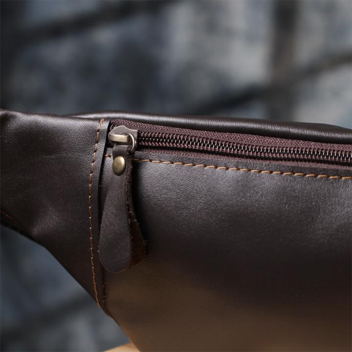 Сумка-бананка Shvigel из гладкой натуральной кожи в коричневом цвете — выбор настоящего ценителя классики и стиля. Мужская бананка от украинского бренда Shvigel выполнена из отборной гладкой натуральной кожи, отличающейся мягкостью, благородным блеском и высоким качеством. Элегантный коричневый оттенок придаёт изделию теплый и респектабельный вид, подчёркивая утончённый вкус владельца. Этот цвет универсален, но при этом выгодно выделяется на фоне стандартных чёрных аксессуаров, добавляя образу индивидуальности.