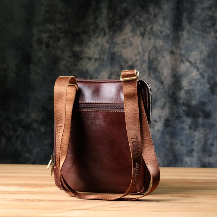 Отзывы: Мужская сумка через плечо из гладкой натуральной кожи Tony Perotti 20854_1 (9137-20 moro) Коричневый